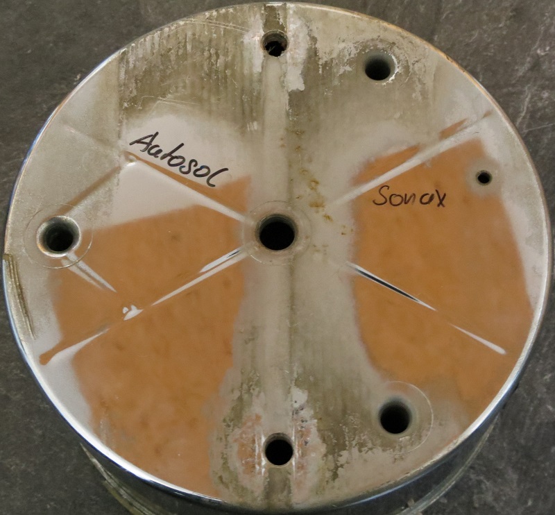Ich hatte, wegen der großen seitlichen Löcher, eigentlich vor das Unterteil zu entchromen und nach dem verschließen der Löcher silber zu lackieren. Aber mangels passablem Ersatz probiere ich es mal anders.