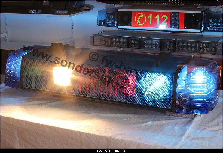 Seitenansicht mit Typenschild-Aufdruck auf der Haube. BE in der Version 3.21B, passend zum Balken. Auf der Wellentaste ist das Yelp-Anhaltesignal programmiert, welches bei Aktiviertem Stop-Polizei ASG vorne eingeschalten werden kann. Frontansicht mit allen nach Vorne verbauten Komponenten aktiviert. Der BSX ist in der Originalanlage in Hessen nicht verbaut und wurde von mir zusätzlich nachgerüstet. Heckansicht mit HWL-GL und aktiviertem ASG-LED mit "Stop Polizei". Der ASG LED stellt die Weiterentwicklung der alten ASG-GL dar und kann nur Stop Polizei und Bitte Folgen anzeigen. In der Front wurde ein ASG-GL mit Stop Polizei in Spiegelschrift verwendet. Besonderheit hierbei ist der zusätzliche WL-LED Anhalteblitz, welcher in Hessen in nahezu jeder Anlage mit verbaut wurde. Stauabsicherung mit aufgesetztem reflektierenden Stauschild. Im Vergleich zur Bayern-Anlage kann aufgrund der fehlenden Vollmatrix kein Hinweistext nach hinten ausgegeben werden. Stauschild mit Stativkennleuchte und HWL-GL. Zur Hessen Anlage mit den Drehspiegeln passt meiner Meinung nach eine Hella KL600 besser, als eine Hänsch Xenon-Leuchte. Die drei Drehspiegel erzeugen trotzdem eine relativ gute Warnwirkung und geben ein stimmiges Gesamtbild ab. Mein Fazit zur Anlage: Ebenfalls wie die Polizei Bayern Xenon RTK ist die Hessische Variante ein schönes Stück RTK6-Geschichte mit viel Ausstattung, wenn man das Alter bedenkt. Ergänzend mit der RTK 6 LED BAB habe ich so drei Autobahnpolizei-Anlagen, welche neben den drei verschiedenen Hauptkennleuchten auch nahezu das ganze Portfolio der Module für die RTK 6 abbilden. |