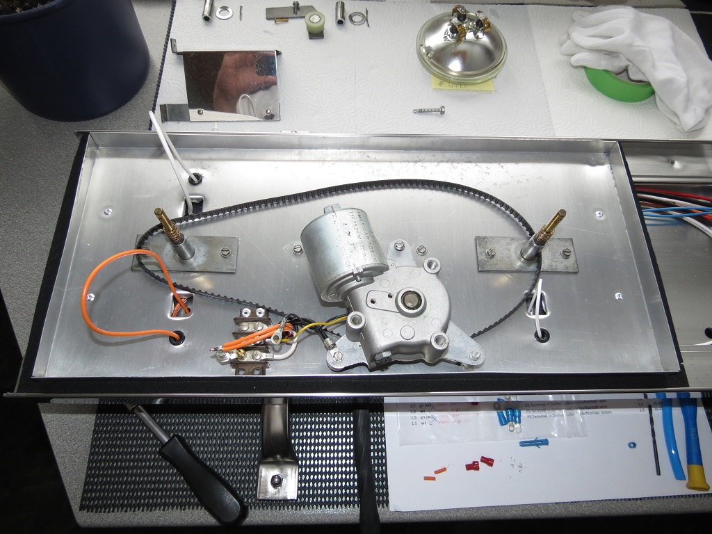Die im Vergleich zur Beifahrerseite geänderte Montagereihenfolge Motor -> Lampenhalter außen -> Lampenhalter innen -> Umlenkrolle/Riemenspanner war zum Ende hin nicht so fummelig.