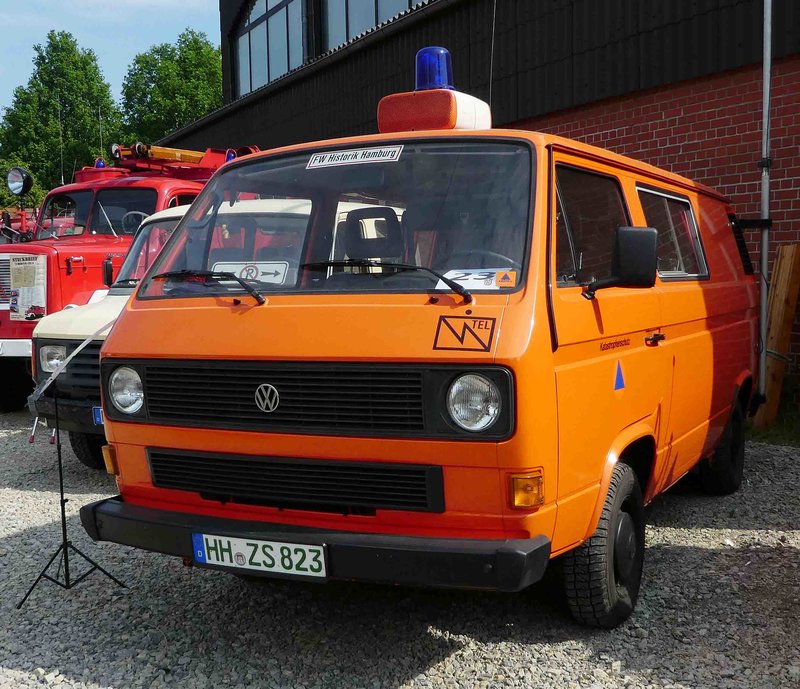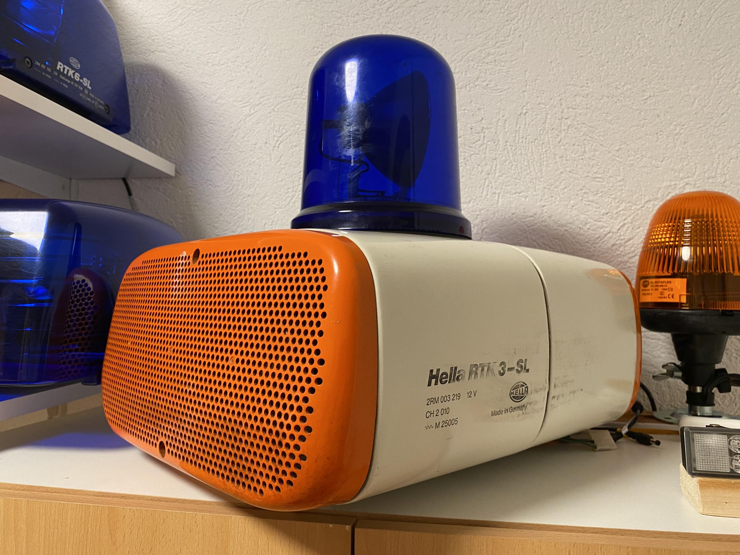 Besonderheit bei diesem Balken sind die RAL 2004 (Reinorange) lackierten Blenden. Das lässt darauf schließen, dass er von einem Fahrzeug des Katastrophenschutzes stammt, wie bei diesem Beispiel von Fahrzeugbilder.de