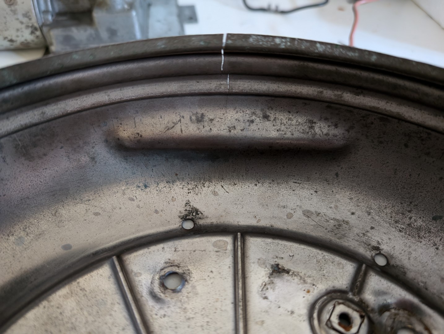 Hat jemand eine Idee wie bzw wo man diese Delle entfernen und auch den Riss verschliessen lassen kann?