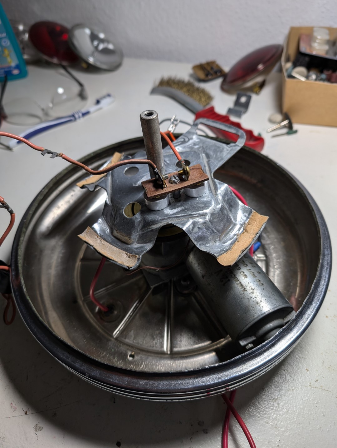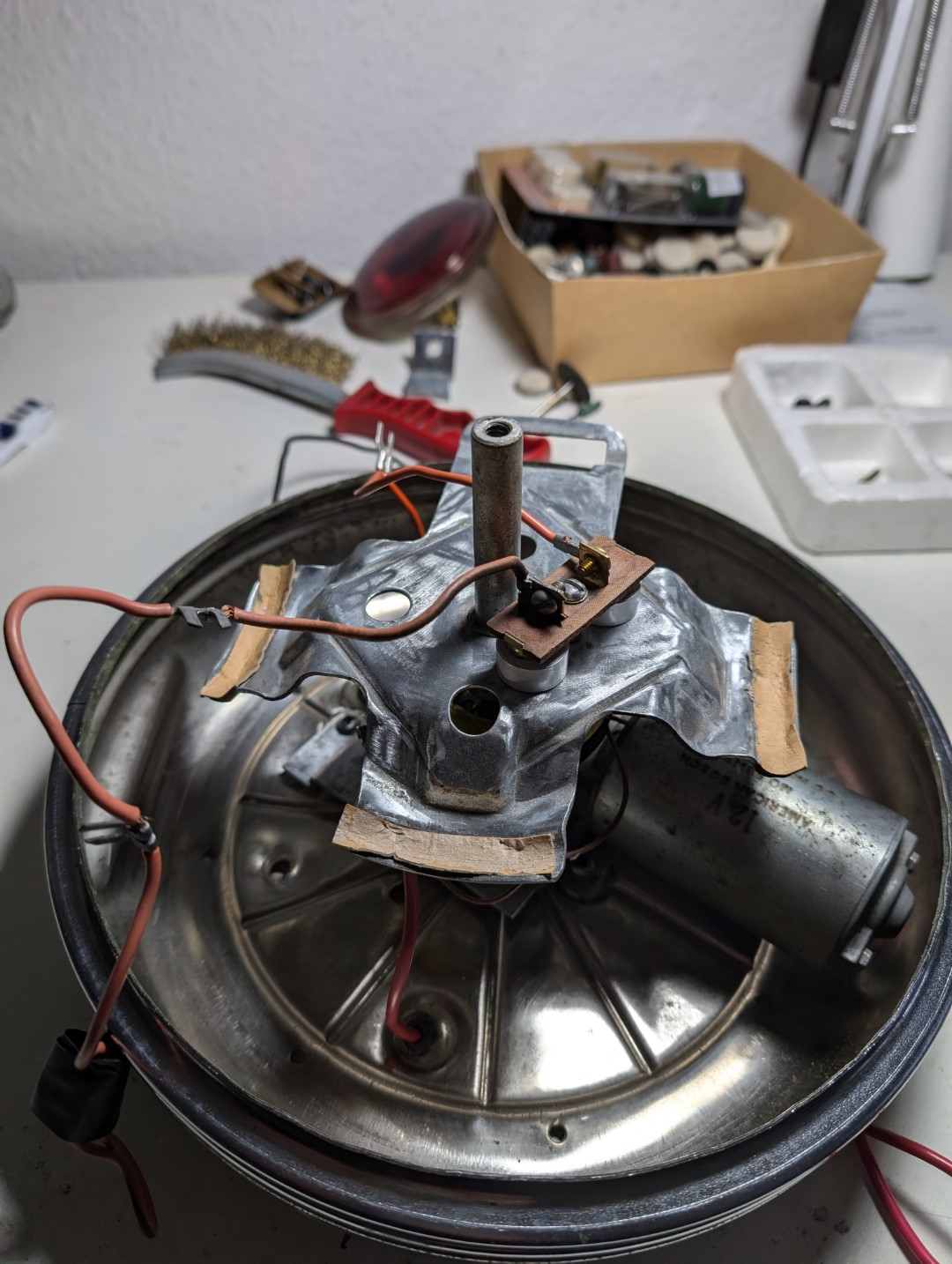 Da ich aktuell mit der Suche nach einem neuen Unterteil nicht weitergekommen bin, habe ich trotzdem die Leuchte aufgearbeitet und dann zusammengesetzt.