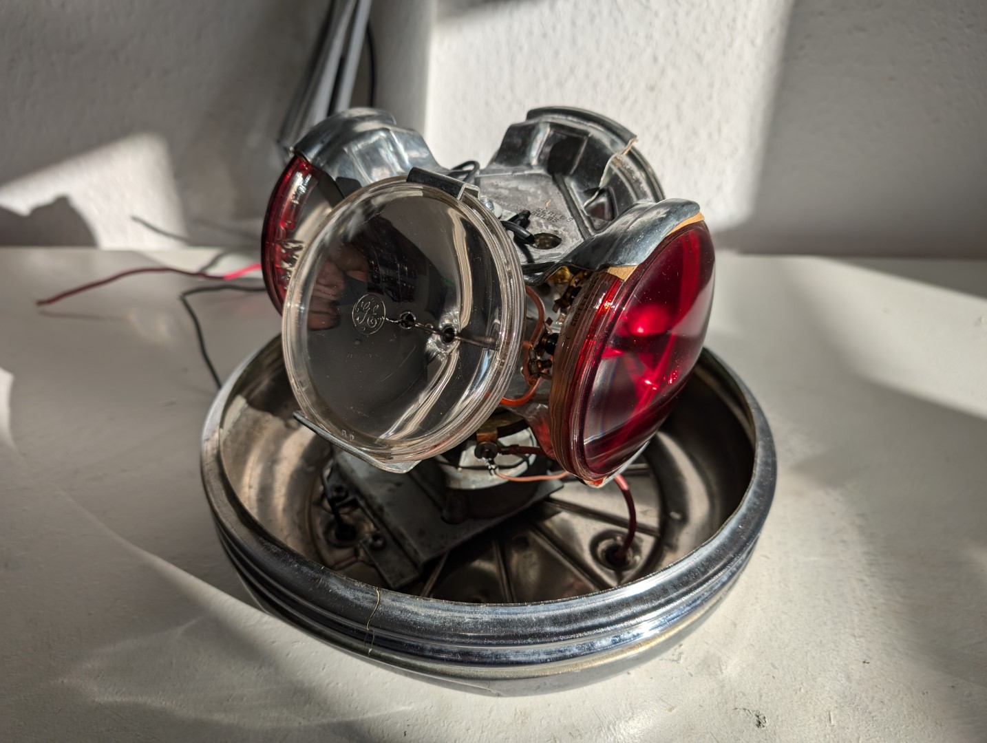 Da die Version 211 der Dietz Leuchte noch aus verchromten Stahlblech bestand, kann man den angegangenen Chrom natürlich nicht mehr so einfach beheben, wie bei der späteren polierten Stahlblech Version der 7-11.