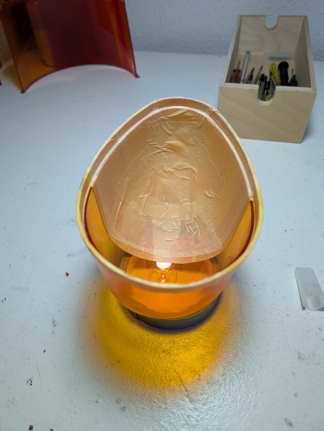 Das Abkleben diente nur zur Einschätzung der Farbkante. Im richtigen Einsatz muss natürlich alles abgeklebt werden was amber bleiben soll.