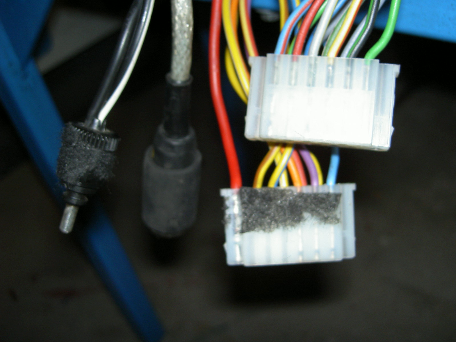 Das Bild zeigt die Kabel die aus der RTK kommen, mit dem Stecker ganz links kann ich gar nichts anfangen, der runde daneben könnte was mit Funk zu tun haben und dann kommen die 2 weißen. roter Plus ist vorhanden, nur wo kommt die Masse dran, geschweige von den Schaltern für Blaulicht, Horn, Anhaltezeichen usw. ......................