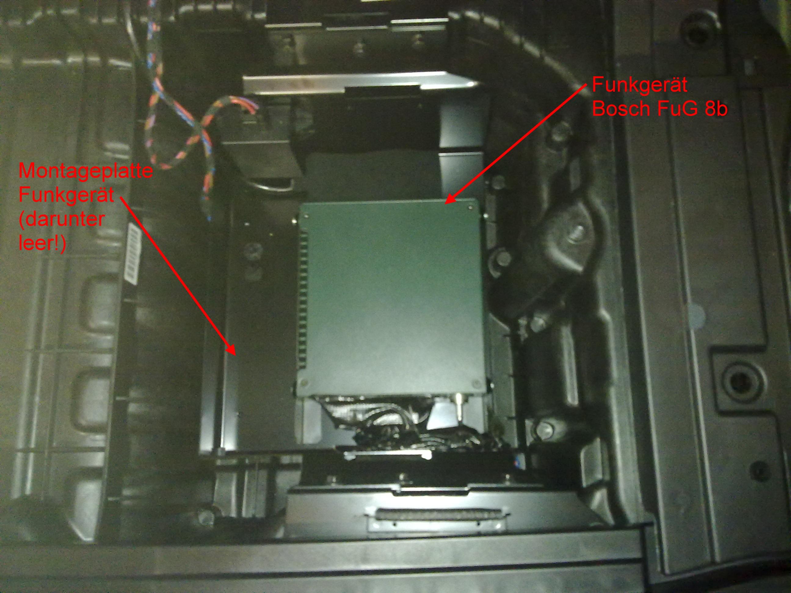 Dort ist nur die Montageplatte für's Funkgerät und die Kabel der Funkvorbereitung...und unter der Platte ist auch nix!!!