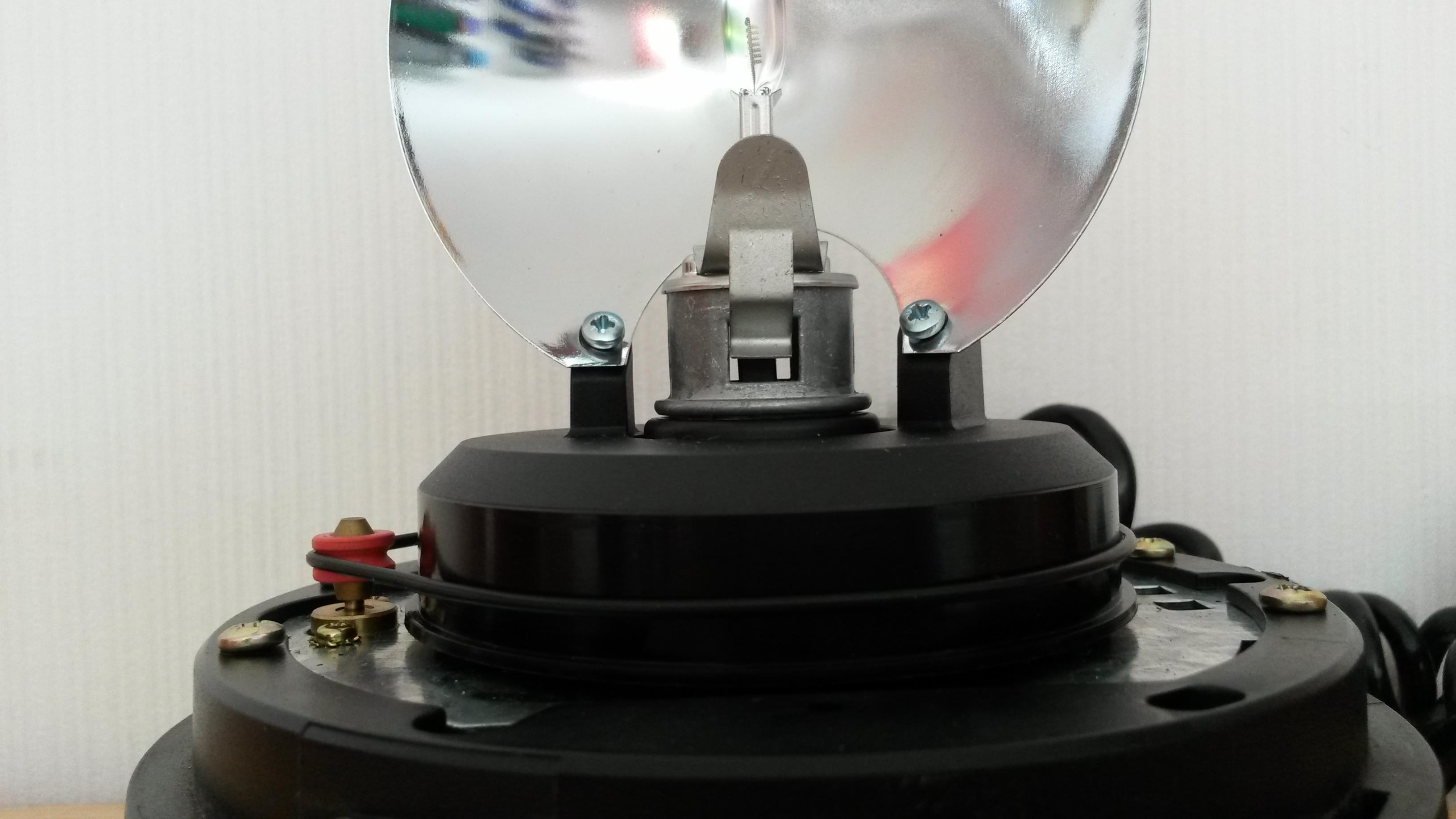 Als Lichtquelle dienst eine H1-Birne um die sich ein metallischer Flächenreflektor dreht.