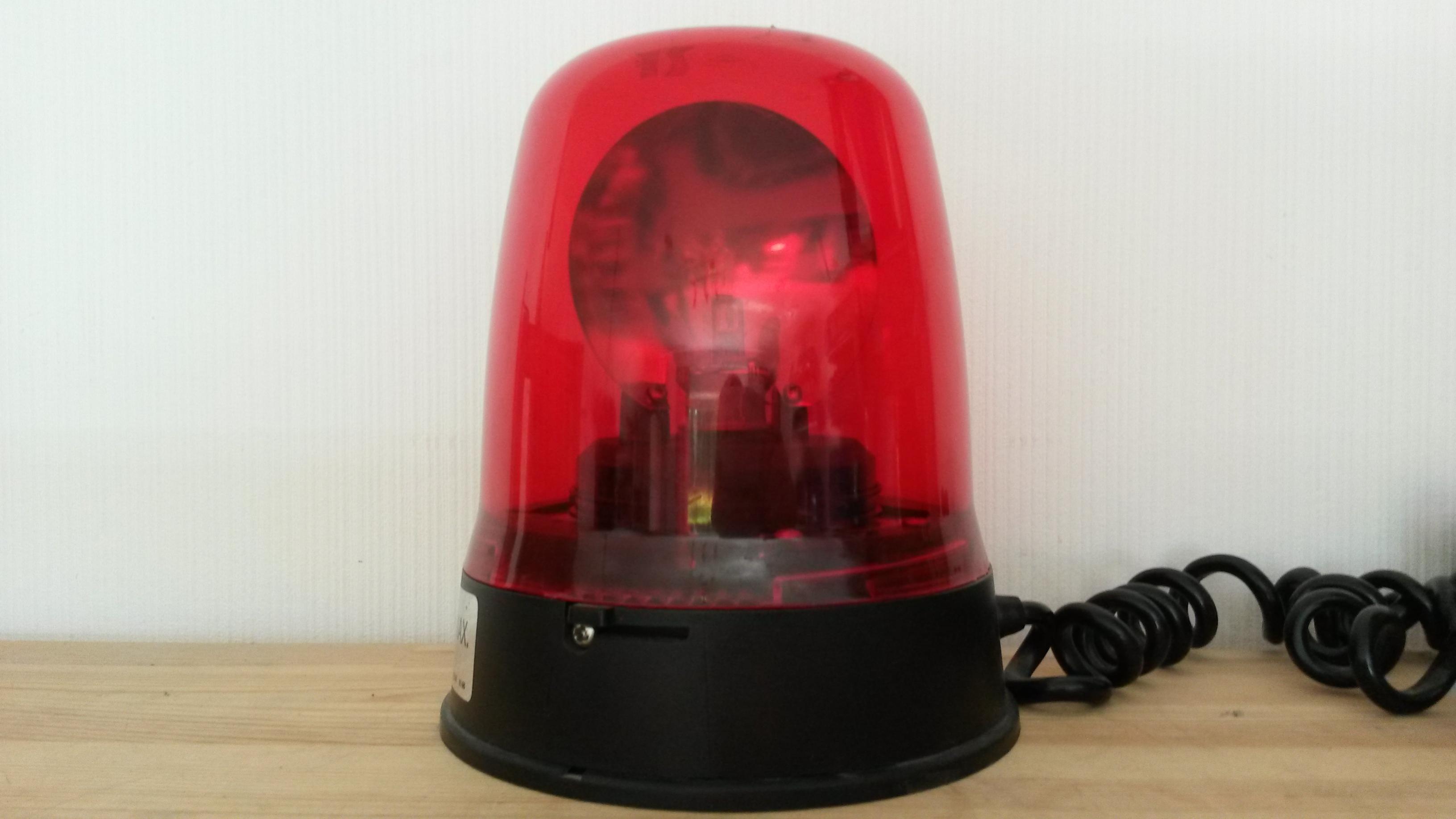 Es handelt sich um eine Rundumkennleuchte mit roter Lichthaube, Drehspiegel und Magnetfuß.