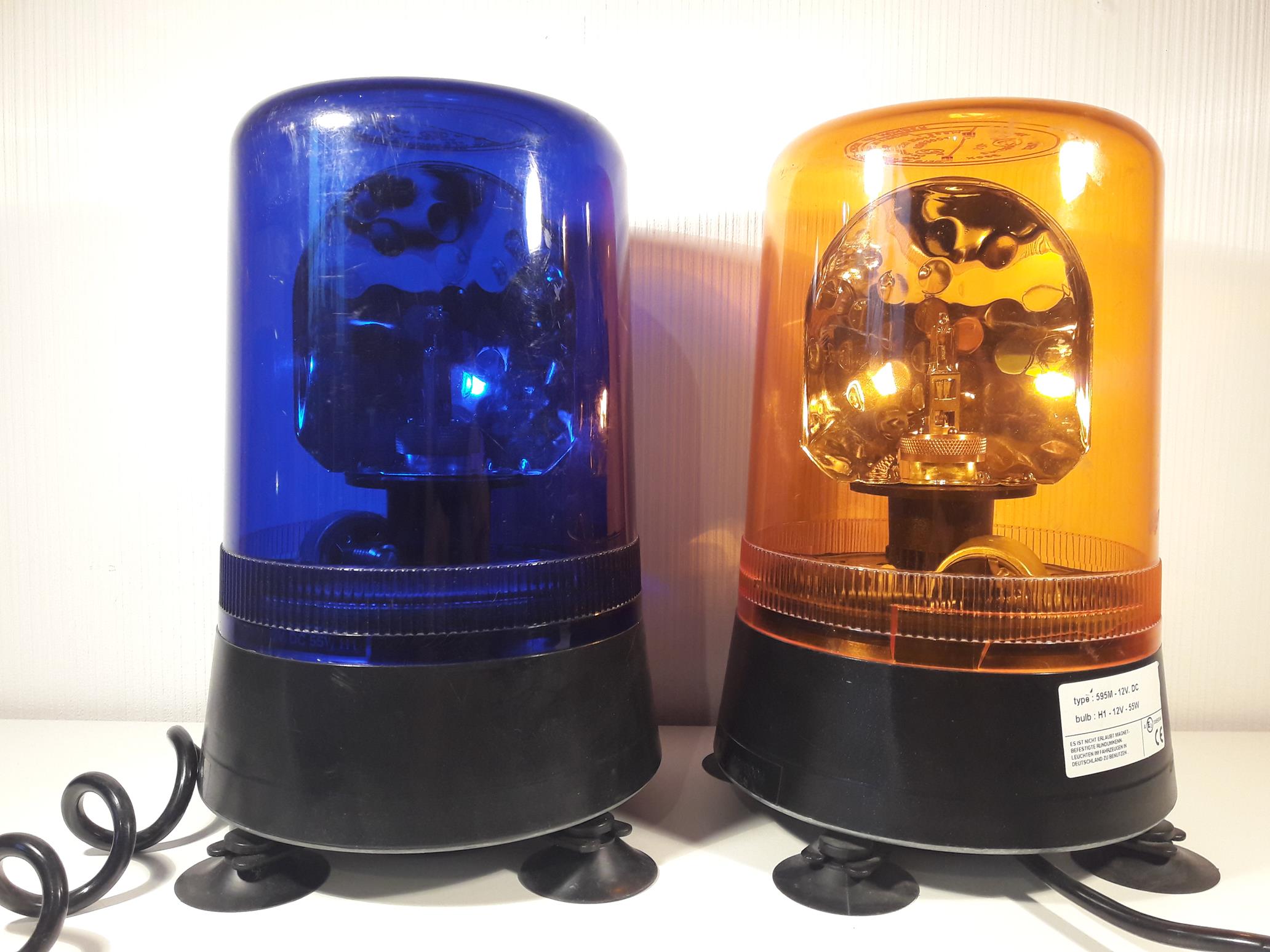 Es handelt sich dabei um einem Rundumleuchte mit Drehspiegel-Technik. Die Betriebsspannung ist 12 Volt, es gibt die 595 jedoch auch für 24 Volt und in Dual-Voltage. Befestigt wird die 595 M mit einem Ringmagneten und vier zusätzlichen Saugern, die an Armen um den Magneten herum befestigt sind. Wegen der Größe der 595 M stehen die Sauger nicht weit über wie bei der 525er Serie. Die Stromversorgung erfolgt über ein dickes Spiralkabel mit Universal-Stecker. Auch bei der 595 M ist die rote Hülse lediglich aufgesteckt und kann leicht im Zigarettenanzünder stecken bleiben. Foto zeigt ein AEB 525-Kabel, ist aber identisch zu dem der 595. Der Drehspiegel dreht sich um eine feststehende H1-Birne, die mit einer Art Überwurfmutter befestigt wird. Der Reflektor verteilt das Licht auf die gesamte Lichthaube gleichmäßig und erzeugt ein gut wahrnehmbares Signal. Angetrieben wird der Drehspiegel von einem Motor (Einbaulage liegend) mit Metallschnecke und einem Kunststoffzahnrad. Der Antrieb ist angenehm leise. Auf dem Typenschild (Aufkleber auf dem Leuchtengehäuse) findet sich neben den üblichen technischen Angaben zur Leuchte und dem Leuchtmittel noch folgender Hinweis "ES IST NICHT ERLAUBT MAGNETBEFESTIGTE RUNDUMKENNLEUCHTEN IM FAHRZEUGEN IN DEUTSCHLAND ZU BENUTZEN." Weiter finden sich auf dem Gehäuse die Zulassungsangaben für die gelbe und blaue Ausführung. Auf der Lichthaube finden sich weitere Zulassungsnummern. Die AEB 595 M ist zwischenzeitlich in der blauen und gelben Ausführung in meinem Fundus. Die AEB 595 M ist eine große Rundumleuchte mit robuster und leiser Technik im Inneren. Sie eignet sich auf Grund ihrer Größe sowohl für PKW, als auch für größere Fahrzeuge, ohne dabei überdimensioniert zu wirken. Für rund 115,- Euro bekommt man mit der AEB 595 M eine ausgereifte und zuverlässige Rundumleuchte. |