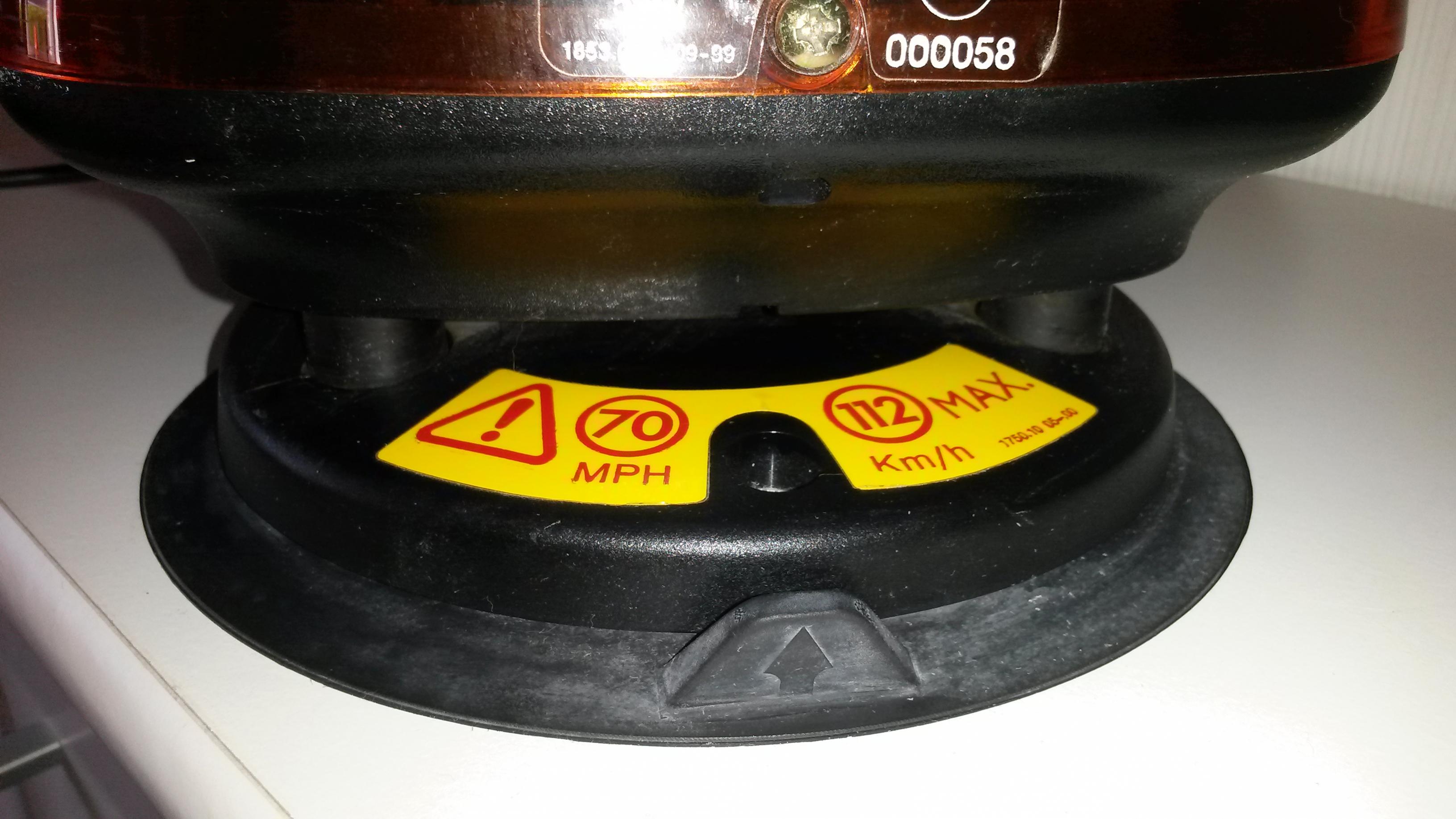 Es handelt sich dabei um einen Mini-Gelblichtbalken mit Magnetbefestigung. Die Betriebsspannung beträgt 12 Volt, die Stromversorgung wird durch ein etwa 2 Meter langes, glattes Kabel mit Zigarettenanzünder-/DIN-Stecker hergestellt. Der Balken ist 420 mm breit, ca. 185 mm hoch und etwa 200 mm tief. Zwei groß dimensionierte, vollgummierte Magneten halten den Mini-Lichtbalken auf geeigneten Untergründen (Stahldächern, pp.) in Position. Die Gummierung verhindert, dass die Magneten Schrammen im Lack hinterlassen. Weiter ist eine Dichtlippe aus dem Gummi geformt. Sie erhöht die Rutschfestigkeit. Die beiden Magneten halten den Aerolite lt. Herstellerangaben bis 80 mp/h, bzw. 112 km/h auf dem Fahrzeugdach. Ein entsprechender Warnhinweis ist auf den Magneten aufgeklebt. Zum lösen des Balkens sind an der Außenseite der Dichtlippe Griffe. Die Lichthaube ist mit zwei Schrauben am Gehäuse verschraubt. Weiter findet sich auf jeder Seite der Lichthaube das Typenschild des Mini-Lichtbalkens. Ein weiteres Typenschild ist innen aufgeklebt Im Inneren des Lichtbalkens drehen sich zwei Metalldrehspiegel um je eine feststehende H1-Glühlampe. Die Drehspiegel werden über einen Treibriemen von je einem Motor (Einbaulage: auf dem Kopf stehend) angetrieben. Jedes der beiden Lichtmodule (Drehspiegel, Glühlampe und Motor) ist auf einer Trägerplatte angebracht, die mittels vier Schrauben auf die Grundplatte des Lichtbalkens geschraubt ist. Zur Verstärkung der Warnwirkung ist zwischen den beiden Lichtmodulen ein Spiegel eingebaut, der im 45° Winkel zwischen den beiden Drehspiegeln steht. Zusammenfassend ist der Britax Aerolite 420 M ein durchaus brauchbarer Mini-Lichtbalken für alle, die keine Hochgeschwindigkeitsfahrten machen. Das Lichtsignal ist gut wahrnehmbar und durch den Spiegel für Deutschland auch untypisch. Der Antrieb ist angenehm leise. Die Verarbeitung ist robust und wirkt durchdacht. |