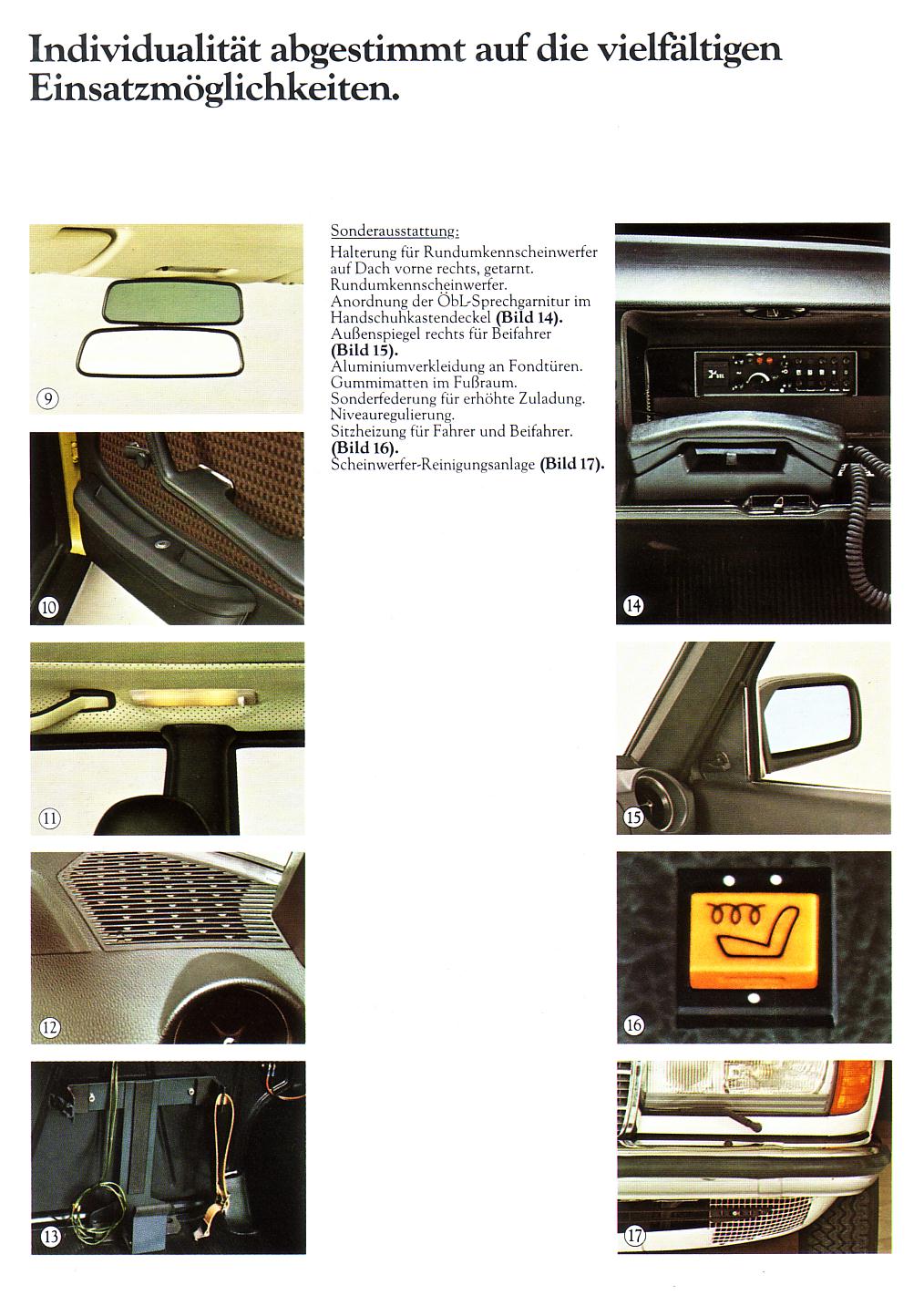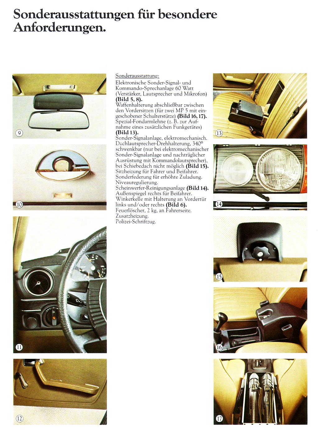 Zeige uns doch einmal ein paar Fahrzeugbilder Deines Mercedes von Aussen und Innen. Du hast Dich auch noch nicht geäussert, ob Du einen W 123, W 124 oder gar einen W 201 besitzt. Unter Zivilfahrzeug stelle ich mir ein unauffällig lackiertes Fahrzeug mit Behördenarmaturenbrett vor. Solltest du keine Behördenversion haben ? Mercedes hat sich sehr viel Mühe gegeben, für Sonder-KFZ ein gänzlich anderes Armaturenbrett zu erstellen. Während im Grosserienfahrzeug eine schmale Kosole mit runden Lüftungsdüsen verbaut war, bekammen die Sonder-KFZ eine breite Konsole und eckige Lüftungsaustritte. Im Armaturenbrett war eine Aussparung für den Funkhörer und Sosi-Schalter / ADZS.Diese konnte mit einem Tarndeckel, der Lüftungsdüsenattrapen hatte, abgedeckt werden. Hier weitere Bilder der diversen Ausstattungsvarianten und zum Vergleich , wie das Standardfahrzeug innen aussah (letztes Bild) |