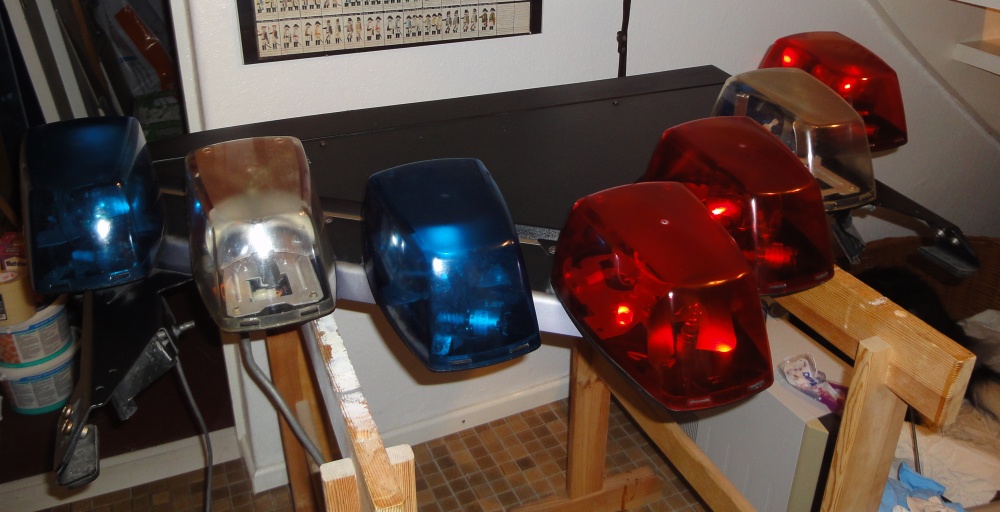 - Takedown - Alley - Suchscheinwerfer/ Jog - Oszilierend rear, front, intersection - rear flasher - drehen in 3 verschiedenen Geschwindigkeiten Die zusätzlichen rear flasher in den äußeren Pods laufen vermutlich über den FA3 Flasher, aber soweit habe ich den Kabelverlauf noch nicht verfolgt. ![]() Masse haben sie, aber sie verweigern konstant jegliche Funtion, also muss irgendwo die Zuleitung vom "Saft" haken. |