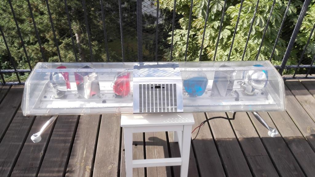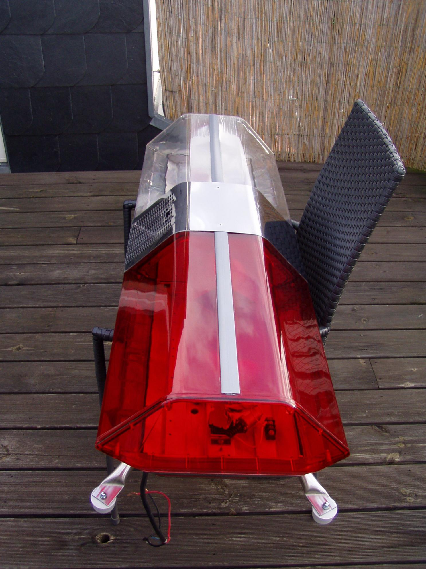 Hab ich so ähnlich (nur als 48") ja auch. Bin aber drauf und dran (zumindest spiele ich mit dem Gedanken) die klaren Hauben gegen farbige mit gelben und klaren Fenstern zu tauschen.
