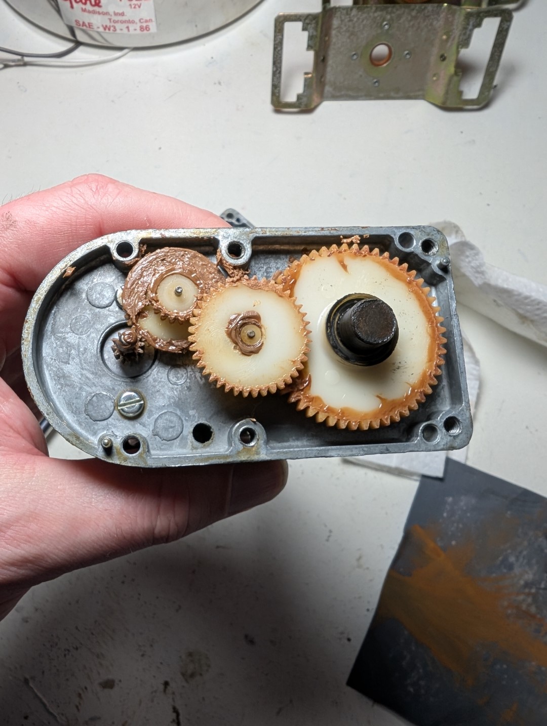 Ich habe die gearbox zerlegt und die "Erdnussbutter" entfernt.
