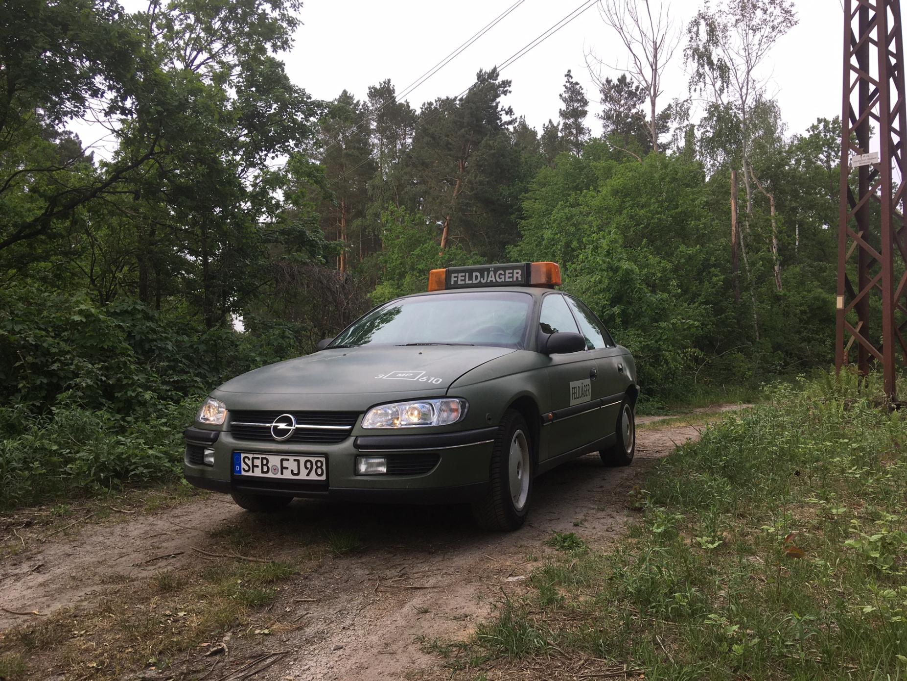 Zusätzlich zur Sammlung habe ich seit gut einem Jahr einen zweiten fahrbaren Untersatz, welcher natürlich dazu gehört. Dabei handelt es sich um ein originales ehemaliges Feldjäger Fahrzeug. Es handelt sich dabei um einen Opel Omega B, Baujahr 1998. Dieser war bis 2005 bei der Bundewehr zuerst bei einem Panzergrenadierbataillon und anschließend bei einer Einheit des Personenschutzes eingesetzt. Bis letztem Jahr stand das Fahrzeug dann eingelagert bis ich es übernommen und technisch hergerichtet habe.