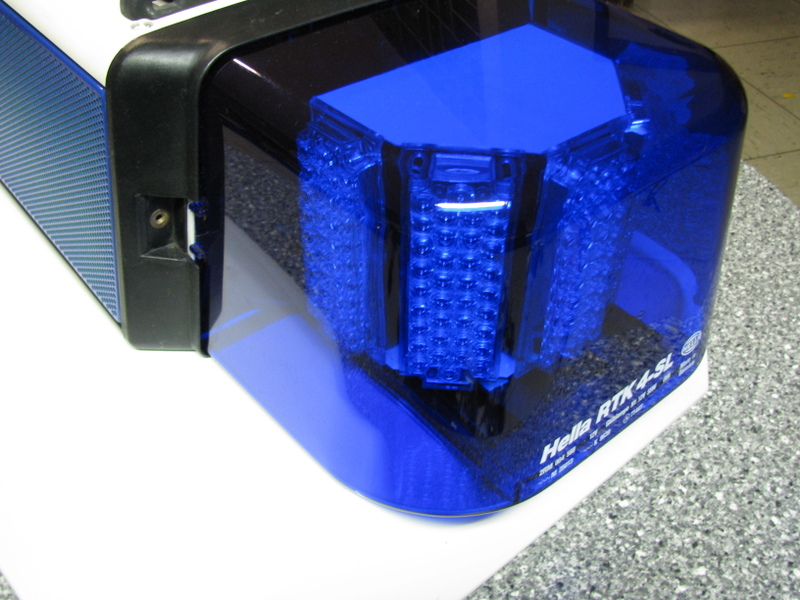 Optisch macht das dann einen richtig guten Eindruck, Zwar sind die Lichthauben die gewöhnlichen in DIN Blau für Halogenkennleuchten, aber da die LED Module sehr hell sind, ,macht das wenig aus.
