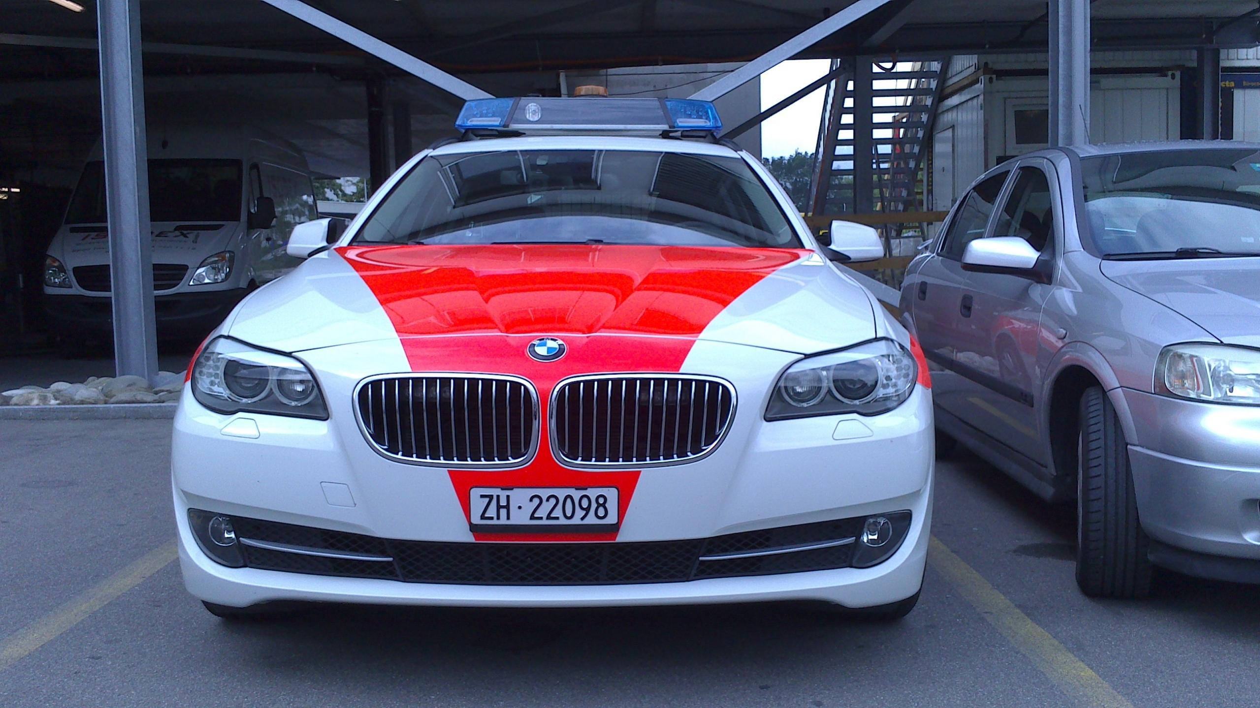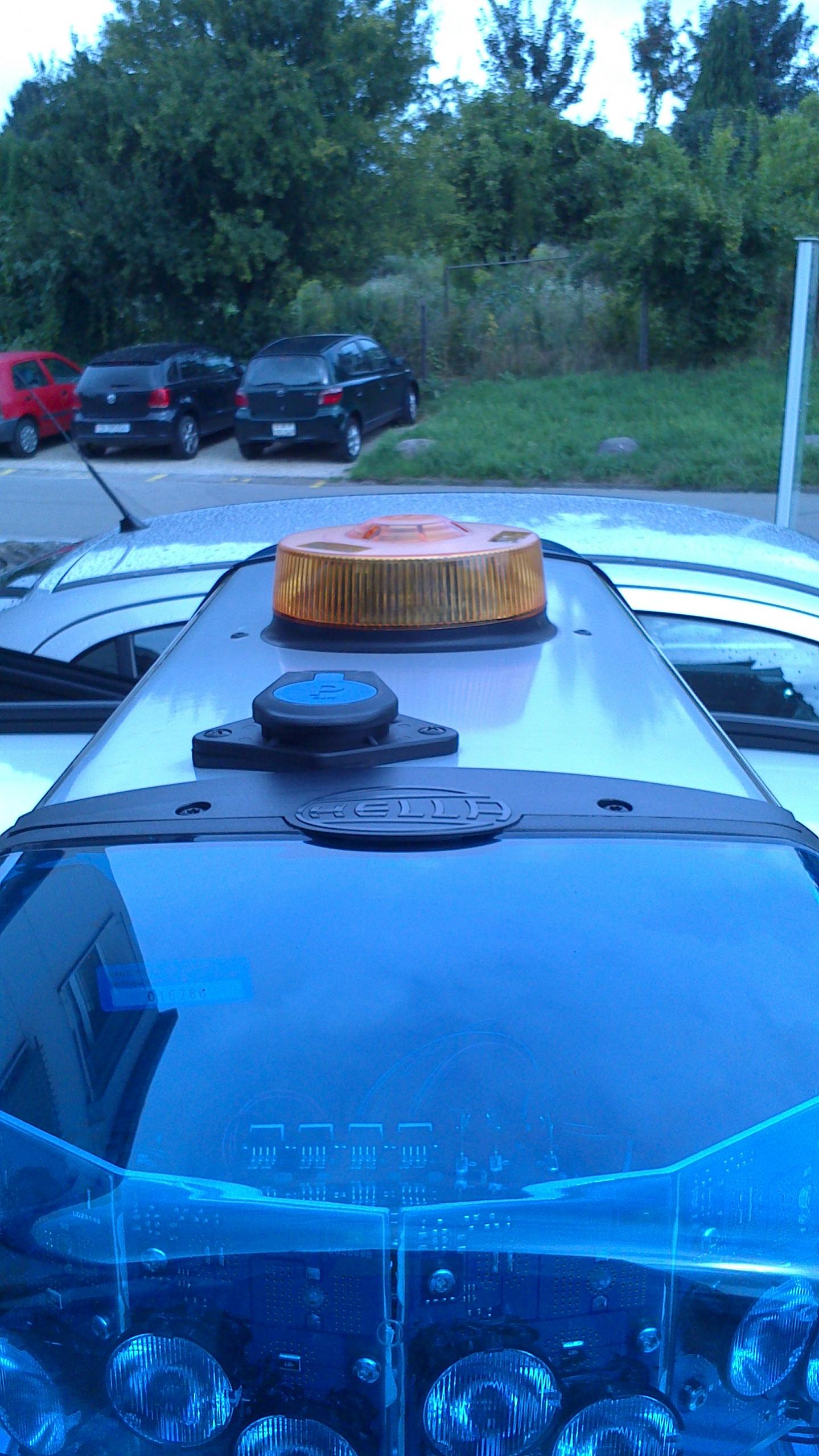 Einige BMW der Kantonspolizei Zürich haben auf der RTK 7 eine gelbe Federal Signal Vama LED RKL erhalten