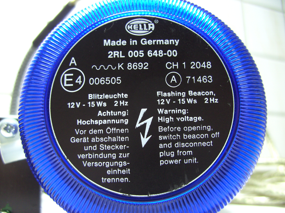 Hella 1x Hella RTK 6 S/L Matrix (KL-XR, LSP-V, BSX-F, KL-A, HWL-GL) 1x Hella RTK 6 S/L silber (KL-DC, LSP-V, BSX-F (neon-organe) rote Hauben) 1x Hella FWL-LED blau 3x Hella HWL-LED blau NEU 1x Hella Rotafix blau/gelb 12 Volt + Schutzhaube 1x Hella Rotafix blau/gelb 24 Volt (NEU+OVP) 1x Hella KLX Kojak Einzelblitz 1x Hella KLX Kojak Doppelblitz mit Spiralkabel und Zwischenkabel 1x Hella KLX 5000 M + Schutzhaube 1x LTD Doppelblitzbalken gelb mit 2 Magnete (NEU+OVP) Hänsch 1x Hänsch Movia-D (schwarzer Sockel, gelbe Haube, Kabel mit langem Glattanteil) |
