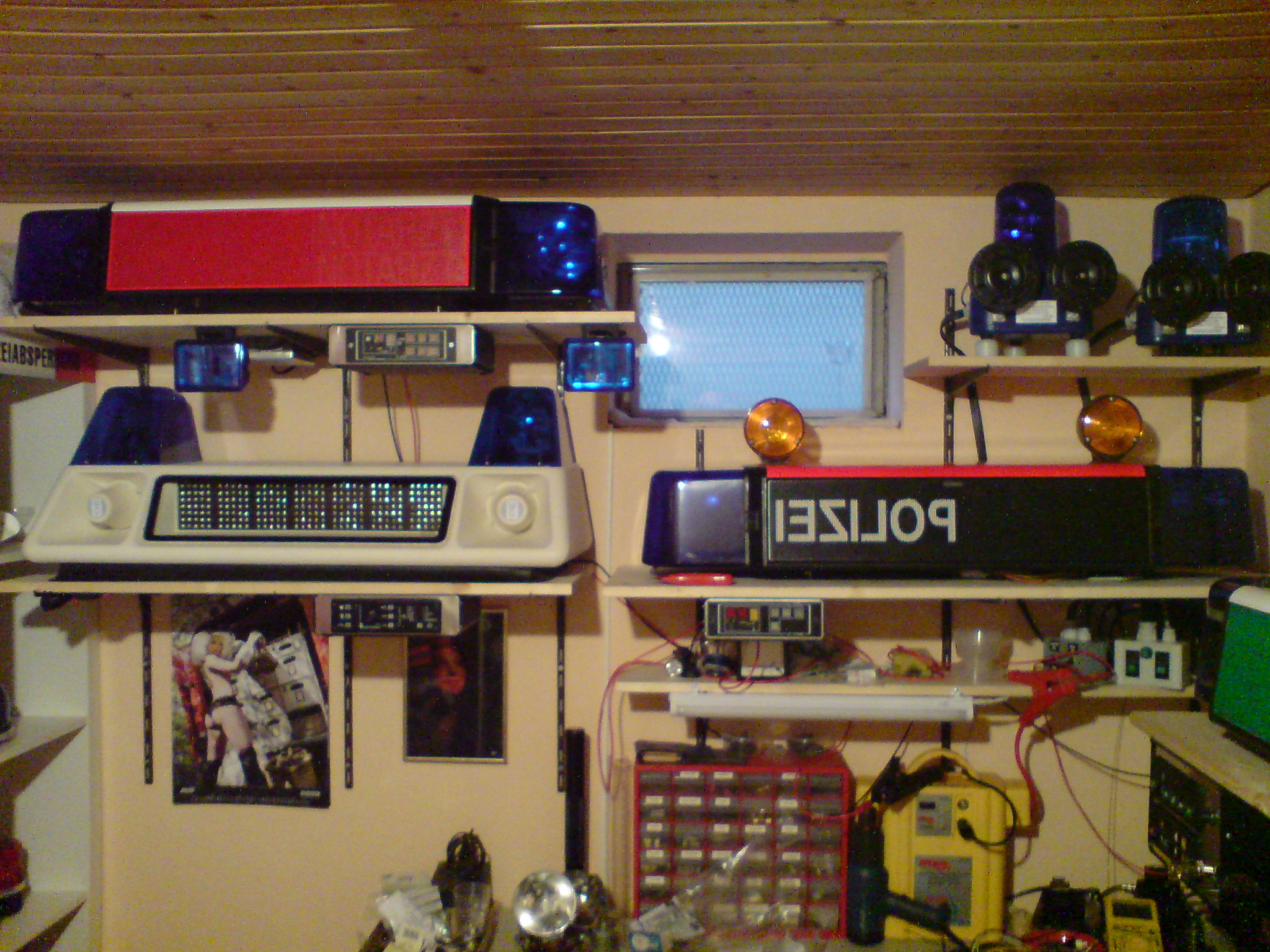 1. Umbau einer deutschen Polizei-Anlage (RTK 4-SL) mit 2 ASG und 3 LSP zu einer schweizerischer Polizei-Anlage, allerdings nicht in der hier bekannten und weit verbreiteten französischen Ausführung mit POLICE auf den Blenden sowie STOP POLICE auf den ASG, sondern in einer rein deutschen Ausführung (Hella-Nr. 2 RM 004 560-097).