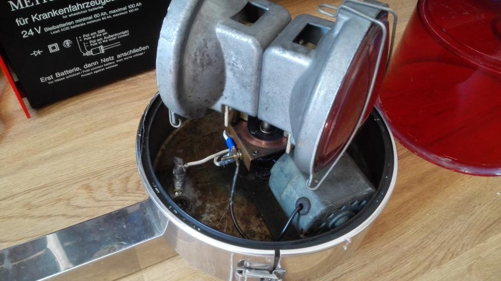 Model: 11 Spannung: 12 Volt Serien Nr.: 2B10D9 Herstellungsdatum: April 1969 Dank der kräftigen logistischen Unterstützung von Dominik (User dominikkobra11 - vielen, vielen Dank nochmal) kam heute meine erste Visibar an. Zustand ist optisch etwas mau. Aber was wäre unser Hobby ohne Aufgaben und Ziele. Sie funktioniert auf jeden Fall. Vom Alter passen alle 3 Indizien zusammen. Die roten Label, die vollen sealed beam Halterungen und der große kantige Motor deuten sehr auf ein frühes Los hin. Nach erster Sichtung sind folgende Sachen geplant: - - rote Label neu - Endkappen hinzufügen - rote Haube von Silikon (?) entfernen und aufpolieren - weitere Haube organisieren - Metallteile reinigen u polieren - - Innenleben checken - 1 defekte sealed beam austauschen - und und und |