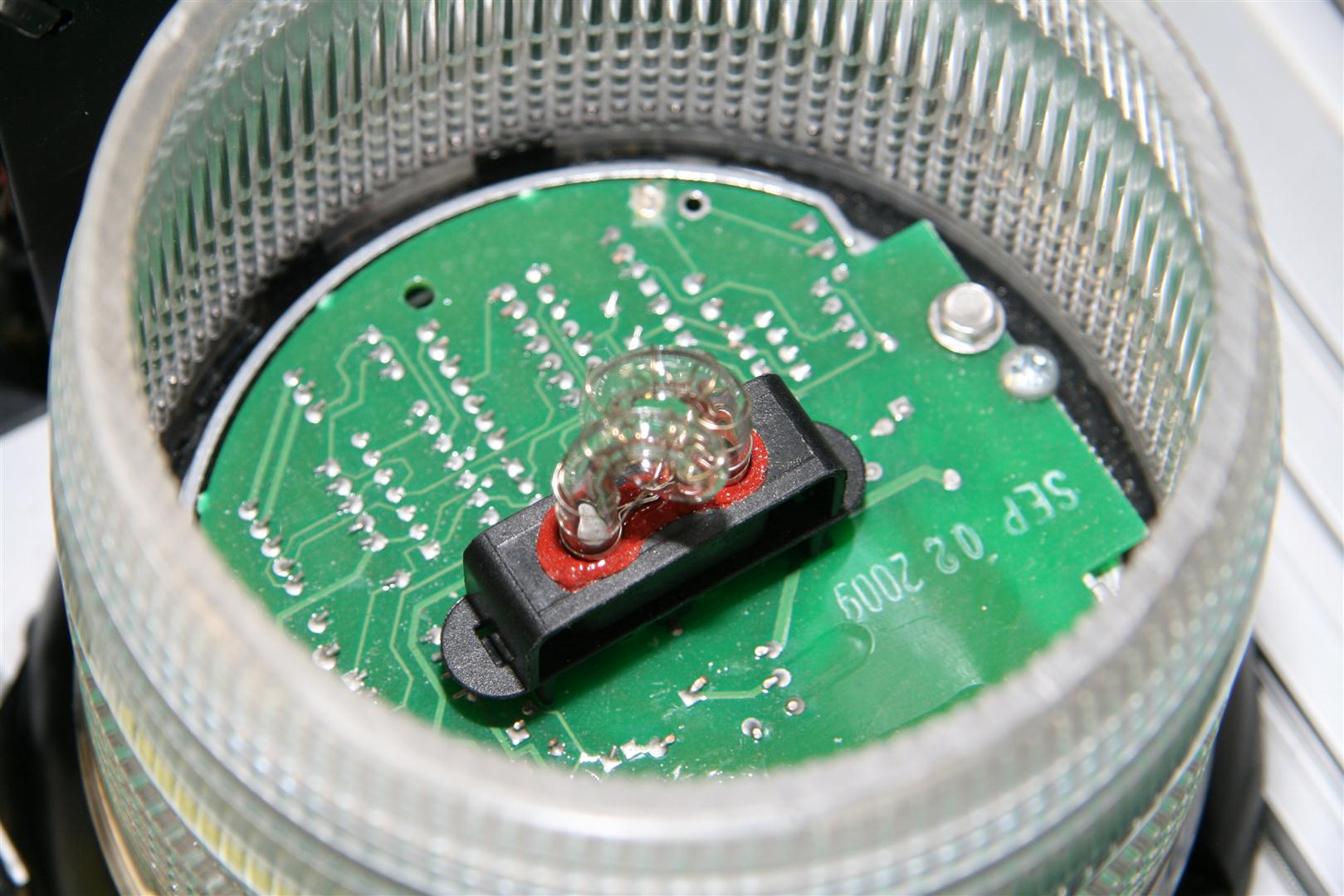 Blitzen die Zusatzleds vor den Drehspiegeln weiß oder blau?