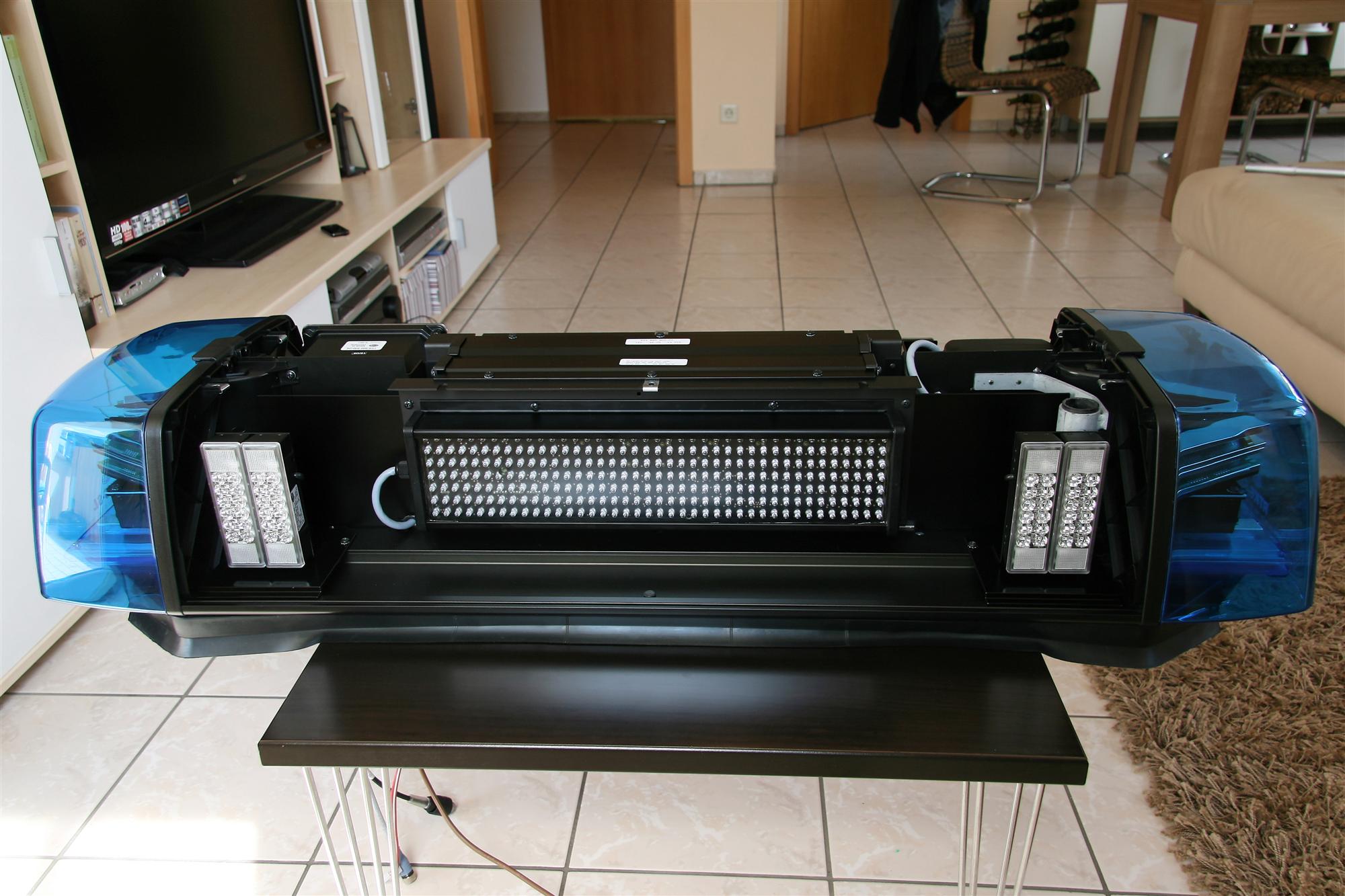 ![]() UPDATE: Hintergrundinfos zur Herkunft des Balkens: Diese RTK6-SL LED stammte von einem solchen BMW 525d touring (E61) der Autobahnpolizei in Bayern: http://www.polizeiautos.de/show_one.php?id=4180 Das Fahrzeug war ein Leasingrückläufer auf Grund eines Totalschadens: es hatte einen leichten Heckschaden sowie eine aufgeschlitzte Fahrertür. Augenscheinlich von einem massiven roten Metallpfosten (deutliche Lackspuren). Die Insassen blieben höchstwahrscheinlich unverletzt, denn der Metallgegenstand ist nicht in den Fahrerraum eingedrungen. Die Airbags haben jedoch ausgelöst. Ursprungszustand: Nach dem Aufbereiten: Hier ein Video von meiner RTK 6-SL LED mit allen möglichen Optionen: Direktlink mit HD-Option: http://www.youtube.com/watch?v=u9jdkO2s5KI Die RTK 6-SL LED hat 2x4+1 Blinkmuster: