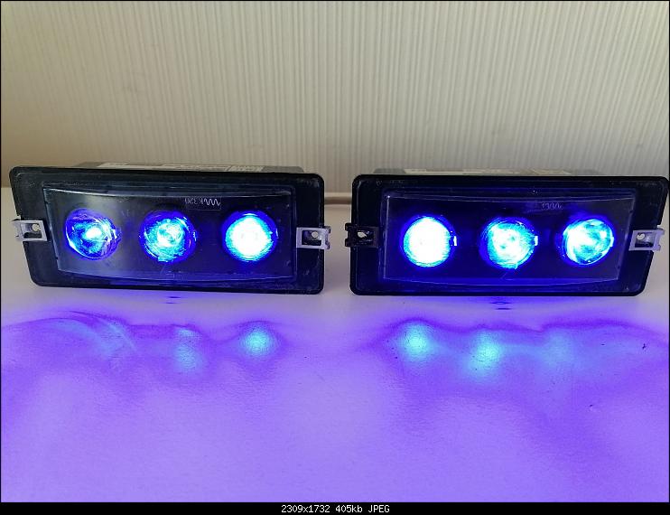 Die Module sind multispannungsfähig, d.h. sie können an Spannungen von 9,6 Volt bis 30 Volt angeschlossen werden. Sie stammen aus einem Polizeifahrzeug und weisen daher leichte Gebrauchsspuren auf. Die Leuchten werden paarweise in der Kofferraumklappe verbaut und sollen die Warnwirkung der Kennleuchte/n oder des Warnbalken auf dem Fahrzeugdach ersetzen, wenn diese durch den geöffneten Kofferraumdeckel verdeckt sind. Die "K-LR 8 Xaphir 2" haben eine KBA-Zulassung (~~~ K 320). Sie findet sich sowohl auf dem Typenschild (Oberseite des Gehäuses) als auch auf der Lichtscheibe. Auf der Lichtscheibe ist der Buchstabe "Z" zu erkennen. Dies zeigt an, das es sich um eine Warnleuchte am Fahrzeugheck (Leuchtrichtung nach hinten) zur temporären Absicherung handelt. Die Lichtscheibe ist ist nach außen gebogen und schützt drei Leuchtdioden mit Optik. Die Optiken sind gebogen ausgerichtet, was dazu führt, dass die Hauptstrahlrichtung je einer Optik sowohl geradeaus, als auch nach links und rechts ausgerichtet ist. Die seitliche Erkennbarkeit der Warnleuchten ist somit deutlich verbessert. Die Stromversorgung der Module erfolgt über ein vieradriges Kabel auf der Gehäuserückseite. Das weiße Kabel wird an plus angeschlossen und das braune an minus. Das gelbe Kabel ist zum synchronisieren der Module. Legt man auf eines(!) der grünen Kabel Plus blinken die Module alternierend. Im Größenvergleich mit einer Hella HWL-LED fällt auf, dass die "K-LR 8 Xaphir 2" schmaler ist. Die Einbautiefe ist mit 3,2 cm identisch. Die "K-LR 8 Xaphir 2" ist eine verdammt helle Warnleuchte, die sich mit ihren drei LED nicht vor ihrem Pendant aus dem Hause Hella (42 LED) verstecken braucht. Sowohl was die Farbsättigung als auch die Helligkeit angeht, sind sich beide Leuchten ebenbürtig. Die "K-LR 8 Xaphir 2" punktet jedoch mit einer etwas besseren seitlichen Wahrnehmbarkeit. Für Freunde des Videovergleichs hier der passende Film: