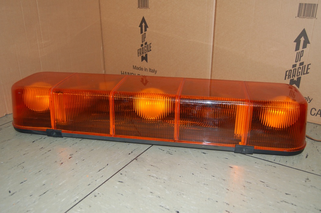 Spannung 12V Länge 1100mm Leuchtmittel H1 Drehspiegeltechnik innenliegende Verspiegelung Optisches Warn System 1 die erste und bislang schönste OWS von Hella. Aufgrund der unzulässigen Innenverspiegelung, ist diese Anlage in DE/A/CH nicht zugelassen gewesen, daher findet man diese Anlage heute nur noch vereinzelt auf alten Abschleppfahrzeugen. Im inneren sind 3 Drehspiegeleinheiten verbaut, baugleich aus der RTK4 Serie, dedoch mit matter Spiegelfläche. Zusätzlich die schon erwähnte Innenverspiegelung erzeugt ein auffälliges Leuchtsignal. Die Anlage war bis ca Mitte/Ende der 1990er erhältlich. In 2 Längen, (PKW oder für Transporter und/oder LKW) mit jeweils 5 oder 7 Haubenmodulen die zu einer kompletten Lichthaube zusammengefügt wurden. Die Anzahl der Drehspiegelleuchten war, unabhängig von der Länge der Anlage, immer drei. |