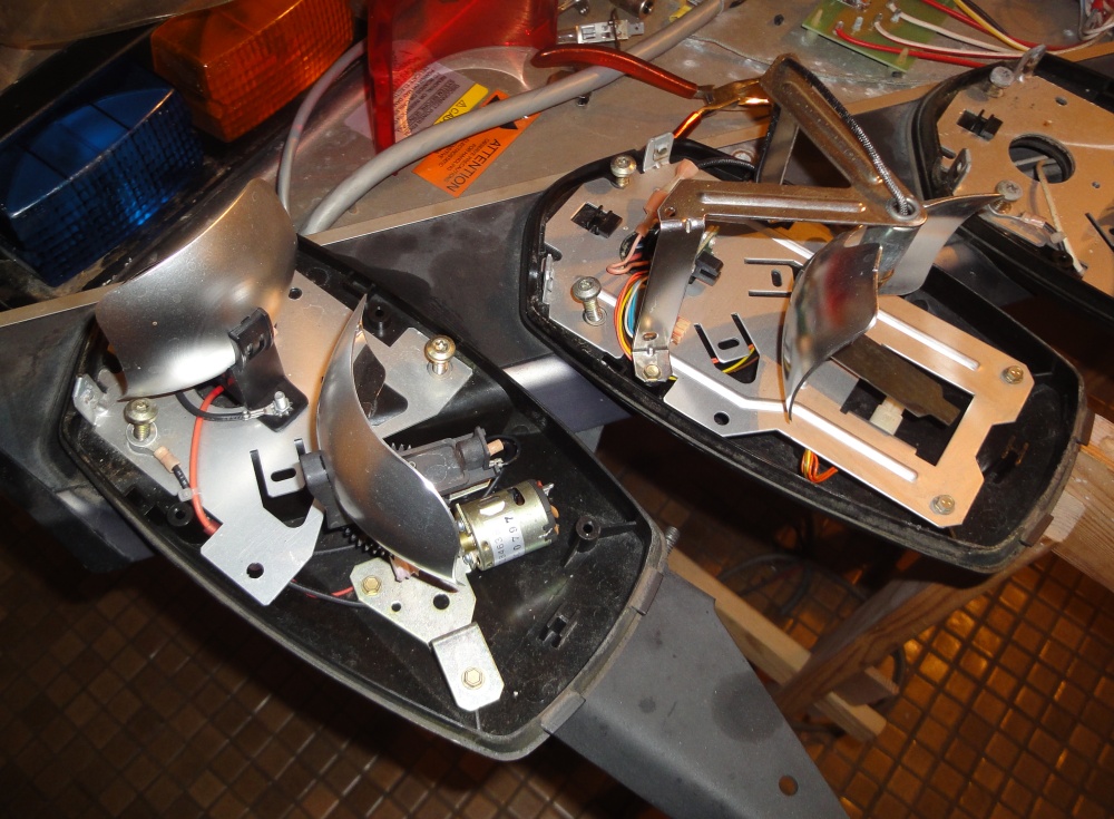 bei mir ist mal wieder ein Neuzugang angekommen. ![]() Federal Signal Smart Vector - Model SVS - Series A - 50 inch Breite - Baujahr 1997 - überarbeitet 2001 Er verfügt über ein sehr ungewöhliches Setup das mir noch nicht untergekommen ist. Aufbau von (in Fahrtrichtung) links nach rechts: - langsamer Dreher mit zus. rear flasher - smart pod - fast rotator - steady burn - fast rotator - smart pod - langsamer Dreher mit zus. rear flasher zusätzlich einen 6 lamp Arrowstick mit je 1 Halogenflasher seitlich. Er ist in einem "überarbeitungswürdigem" Zustand. Lag die letzten Monate im Schleifraum einer Lackiererei rum, und so sieht er auch aus. Die Fotos sind nach!!! der ersten Reinigung entstanden. Innen war fast 1mm dick fettiger "Schlamm". Die Hauben sind in einem Zustand als ob sie gesandstrahlt wurden. Bis auf die rear flasher in den äusseren Pods habe ich alles zum laufen bekommen. ![]() Haben die dip switches eine andere Auswirkung als nur die Funktionen der Smart pods? ![]() Hinweise sind gerne erwünscht!