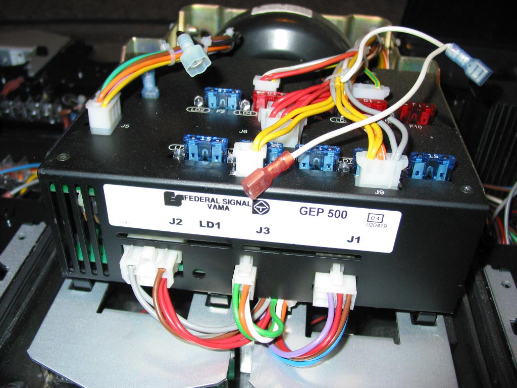 Es können bis zu 2 100W 11Ohm LSP angeschlossen werden. Dabei entspricht die Ausgangsleistung bei einem LSP 100W und bei zwei 180W. Für den Anschluß der Hauptkennleuchten, der vorderen (TakeDown) sowie der seitlichen (Alley) (Arbeits-)Scheinwerfer stehen jeweils 2 Ausgänge zur Verfügugng. Desweiteren gibt es zwei Ausgänge (AUX1) die alternierend geschaltet (Wechselblinker) werden und noch ein Ausgang (AUX2) für weitere "Hilfs-" Leuchten oder Zusatzfunktionen. Alle Ausgänge können jeweils mit maximal 10A belastet werden. Ein weiterer Ausgang steht (je nach Programmierung des HBT) für eine interne Lautstärkeabsenkung oder einen weiteren Kanal (ebenfalls mit 10A belastbar) zur Verfügung. Insgesamt können also bis zu 6 Kanäle zum steuern eines Lichtbalkens zur Verfügung stehen. Auch eine SignalMaster Steuerung, welche über 4 Signal-Muster (Left, Right, Center out und Warn) verfügt, ist integriert. |