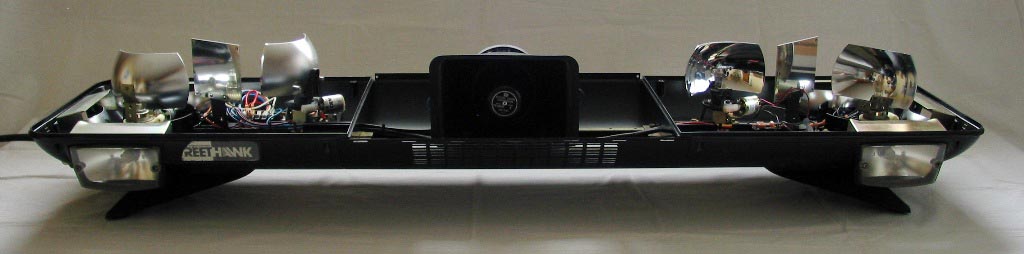 Federal Signal - StreetHawk Model S1B-L, Serie A, 12Volt Über den genauen Lebenslauf dieses Leuchtbalkens ist mir nichts bekannt. Aufgrund des unteren schwarzen Mittelteils und der alten Bauform der Drehspiegel halte ich es für ein recht frühes Model. Maße (circa):