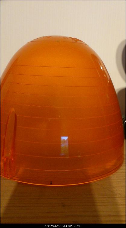 ![]() Edit: Links zum Hersteller weiter unten! Es handelt sich um eine orange Kennleuchte mit Drehspiegel und Magnet-Sauger. Die Kennleuchte sieht aus wie ein Ei im Becher. Mit drei Schrauben ist die Lichthaube im Gehäuse verschraubt. Eine horizontal verlaufende Riffelung (10 Ringe) bricht das Licht, zudem ist die Haube milchig trübe. Oben ist das Wort "TECNO" zu lesen. Weiter ist ein H1-Leuchtmittel abgebildet und die Zulassungsnummer "A1 E3 [im Kreis] 0054544 e24 [im Rechteck] 03 1206". An der Unterseite des Leuchtengehäuses ist ein Magnet-Sauger geschraubt. Der Drehspiegel der Leuchte dreht sich um ein feststehendes H1-Leuchtmittel. Hier ist das Leuchtengehäuse und die Grundplatte mit Motor und Drehspiegeleinheit abgebildet. Die Grundplatte ist dreieckig gestaltet und mit drei Schrauben befestigt. Der Motor treibt den Drehspiegel über einen breiten, schwarzen Treibriemen an. Die Leuchte ist dadurch angenehm leise. Das Signalbild dieser Leuchte ist gut wahrnehmbar und die Verarbeitung wirkt stimmig. Hersteller: pro.el. International Modell: TC-M |