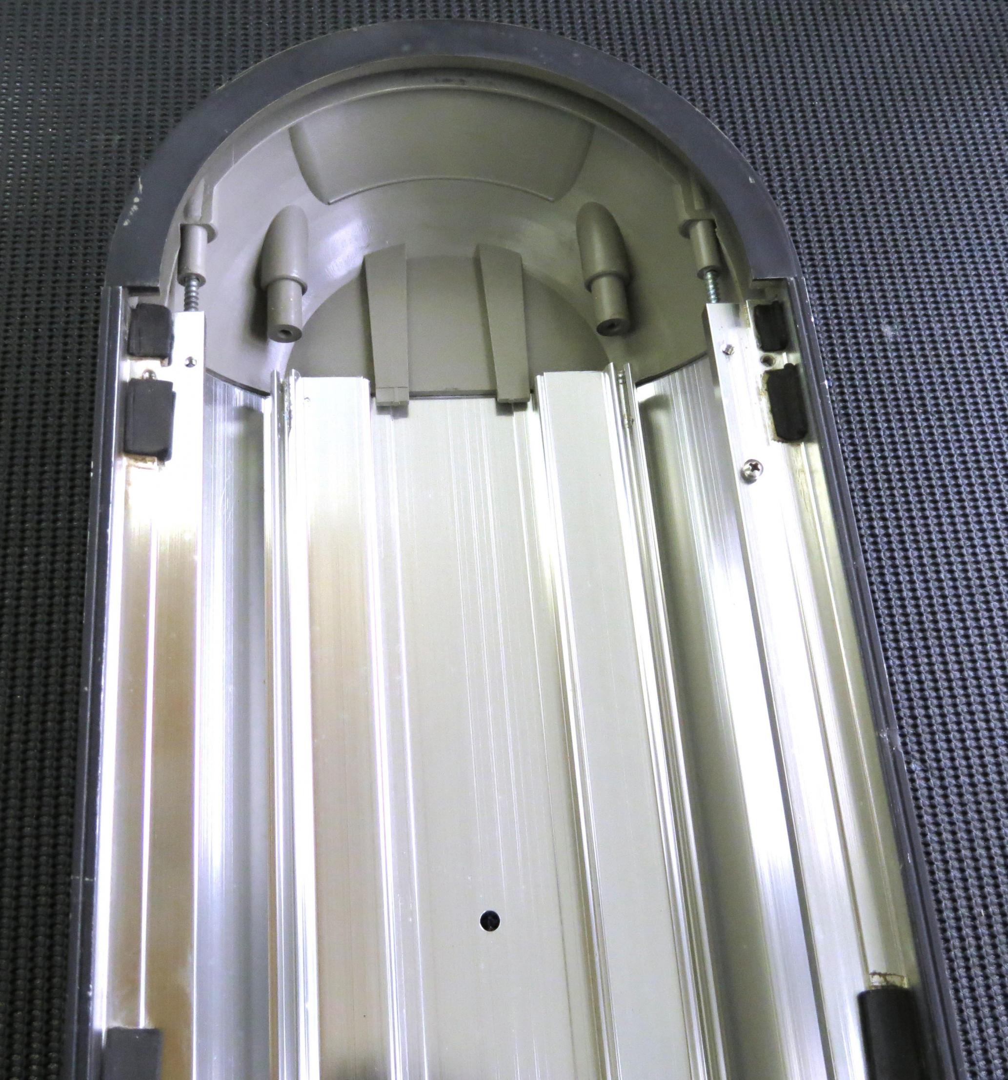Der Grundträger ist ein schweres, korrosionsbeständiges, Aluminium Strangpressprofil und bildet zusammen mit den Kunststoff-Endkappen eine Art Wanne.