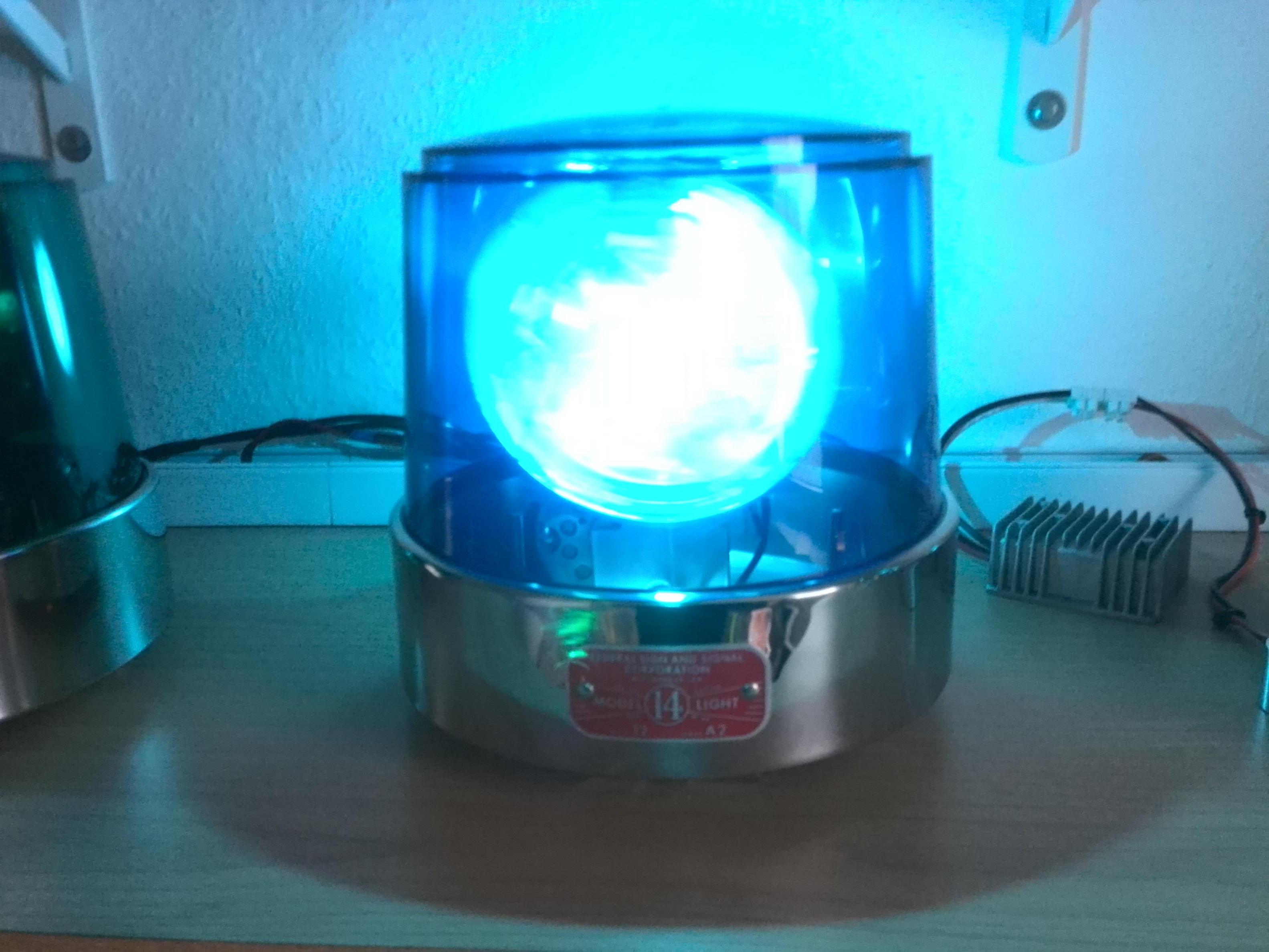 Sie kam bei mir mit einer kaputten Haube an. Allerdings war es eh die Falsche. Also habe ich eine in NOS California Blue bestellt. Natürlich ohne Frosted Top. Desweiteren wurden alle Teile poliert und gesäubert. Leider hat der Motor bei der Restauration den Geist aufgegeben. Aber ich hatte zum Glück noch einen auf Lager. Die Motorhalterung wurde geschliffen und neu verzinkt. Die Leuchte läuft auf 12 Volt und ist von der A2 Serie. Ich habe ja bereits eine Model 14 die ist aber Serie A3. Dort ist ein anderer Motor und eine andere Halterung verbaut. Sonst gleichen sich die Leuchten. Hier nun die Bilder vom Ergebnis: |
