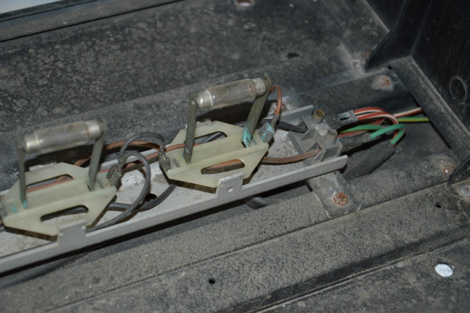 Oben am Deckel waren zwei Antennen angeschraubt, jedoch sind davon nur noch die Halterungen übrig. Da diese in einem sehr schlechten Zustand sind, habe ich sie derzeit abmontiert.