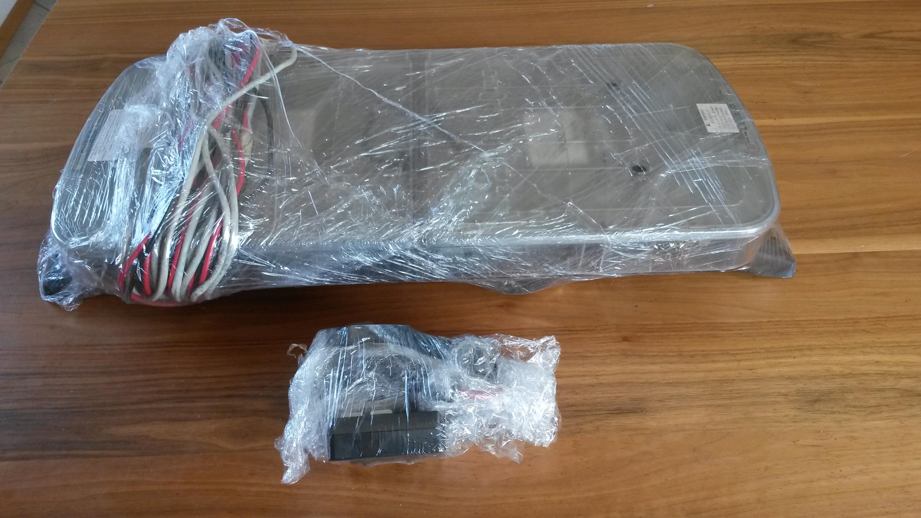 Gut verpackt: Nach dem entfernen der Folie war der Zustand als "nicht schlecht" zu beurteilen: Füße, Kabel, Sicherungshalter und Bedienteil - alles dabei. Die eingestellten Blitzmuster gefallen mir nicht so ganz und am Bedienteil sind noch zwei Tasten unbelegt / ohne erkennbare Funktion. Auch der Schiebehebel erzeugt am Balken keine Reaktion, zeigt am Bedienteil left, center out und right als TA-Funktionen an. Über Hilfe bei der Umstellung / Programmierung wäre ich dankbar! |
