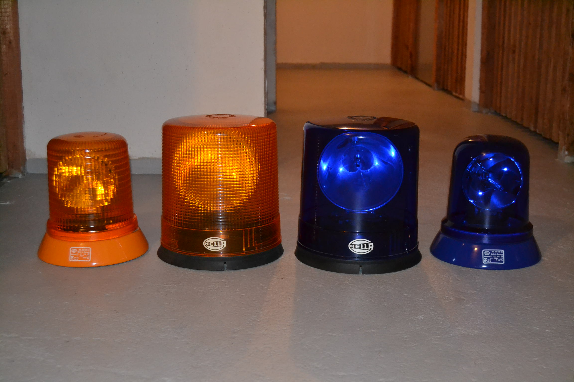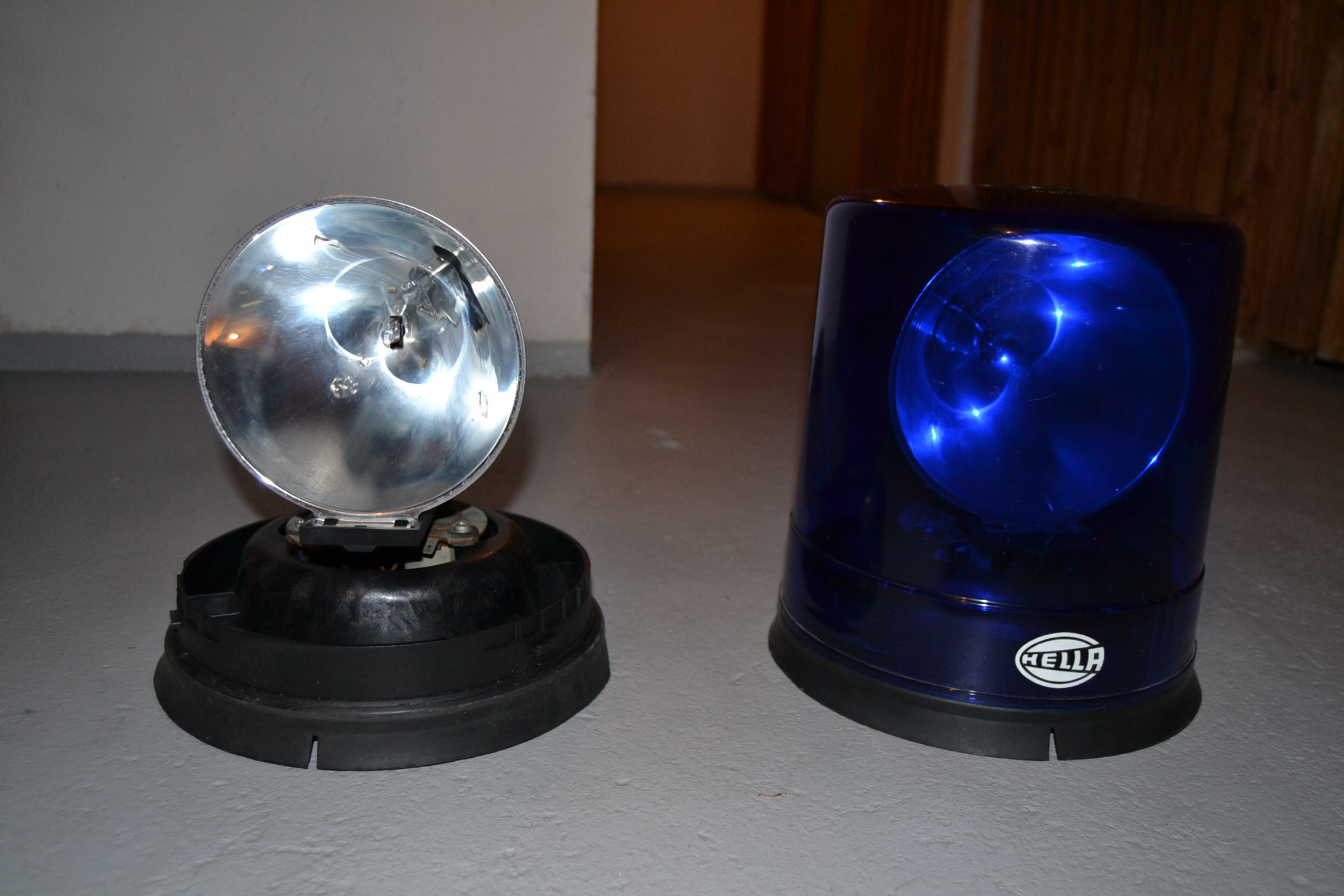Je eine KL800 in der allerersten Version mit dem großen Reflektor in gelb und blau. 12V. Interessant ist auch der Größenvergleich zur KLJ80. |