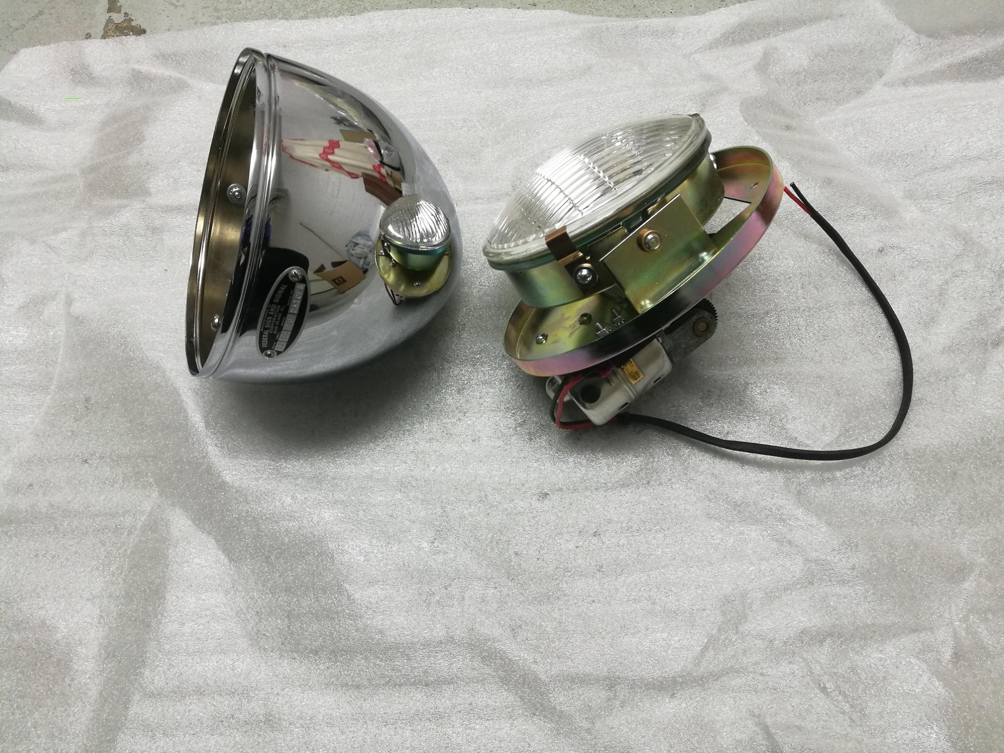 Eine Federal Signal Model 18 Diese Leuchte hat das gleiche Gehäuse wie die Model 19. Das Innenleben ist aber anders. Bei dieser Leuchte ist ein PAR46 Leuchtmittel verbaut. Dieses wird durch einen Motor von Oben nach unten bewegt. Hier ein Video, der Funktion: https://youtu.be/LdZvWcJzPRA Nun einige Bilder, der Restauration: P.S. Leider kann ich das Bilder einfügen hier nicht mehr verwalten. Und musste alles auf einmal anhängen. |
