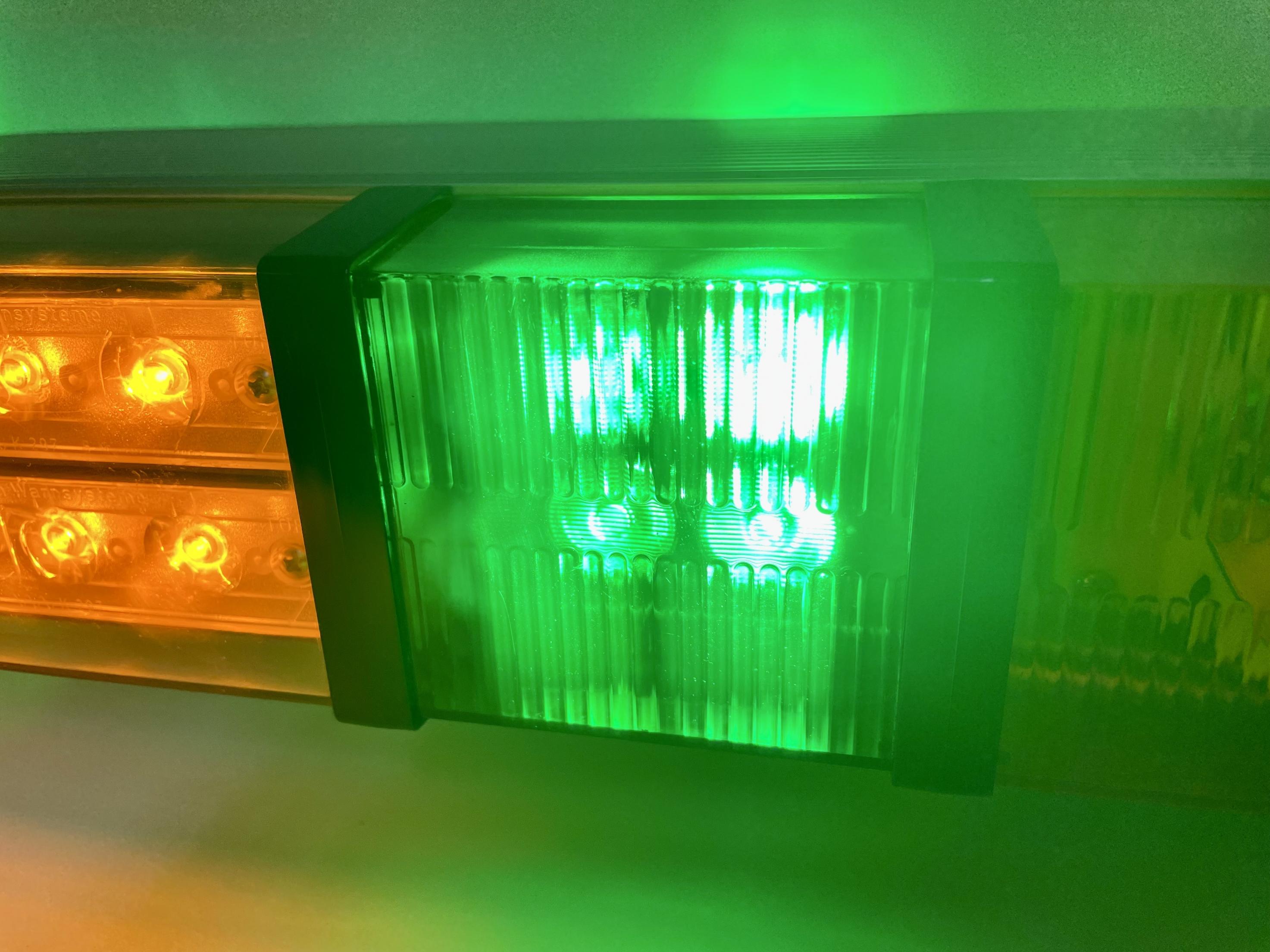 Sowohl die gelben Hauptleuchten, die gelben LED Module und das grüne Signallicht können getrennt von einander geschaltet werden.