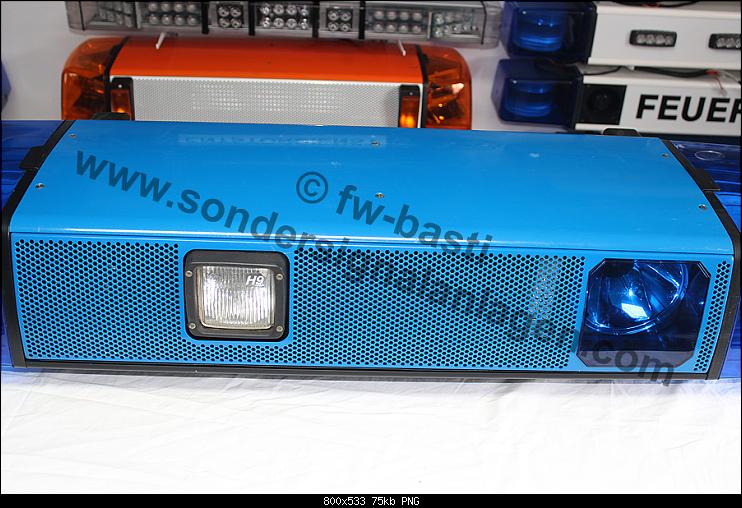 Typ: RTK 6 SL Leuchtmittel: Xenon Leuchtfarbe: Blau Balkenbreite: 1.400mm Baujahr: div. Hintergründe zum Balken: Als Grundanlage diente eine RTK 6 aus Hessen, wie sie zum Beispiel bei der Autobahnpolizei Verwendung fand. Nachdem dort nur ein ASG nach vorne verbaut wurde, rüstete ich zuerst 2 ASGs für hinten nach. Wenig später wurde die Heckblende durch eine Blende mit HWL-GL getauscht, sowie ein BSX verbaut. Dieser wurde, nachdem die passende Blende gefunden war zum BSX-F umgebaut. Die Anlage ist meine Interpretation einer Autobahnanlage für einen Transporter. Verbaute Komponenten: