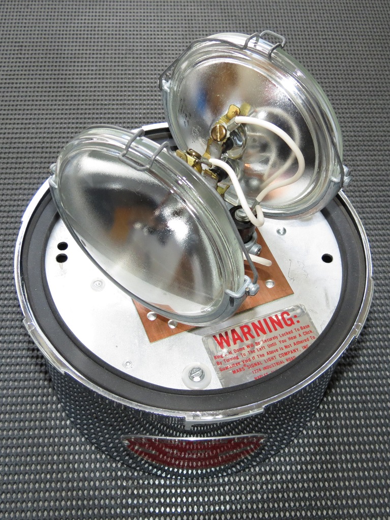 Trotz der 28V auf dem Typenschild ist ein 14(12)V Innenleben (12V Motor und 2 parallel geschaltete 12V Leuchtmittel) verbaut. Im Unterschied zu einer „normalen“ 12V Leuchte ist hier noch ein zusätzlicher Kasten verbaut, der die eingehende Spannung von 28V (vermutlich über einen Widerstand/Spannungsteiler) auf 14(12)V runtersetzt“. Zustand bei Erhalt: Hat zwar ein paar Lagerspuren, scheint aber noch nie montiert gewesen zu sein und hat auch kaum Laufspuren auf der Kontaktplatte. Wäre somit also NOS. Was bisher geschah: Aufgrund des (sehr) guten Zustandes gab es, außer einmal über die Lagerspuren drüber zu polieren, nichts zu tun! |