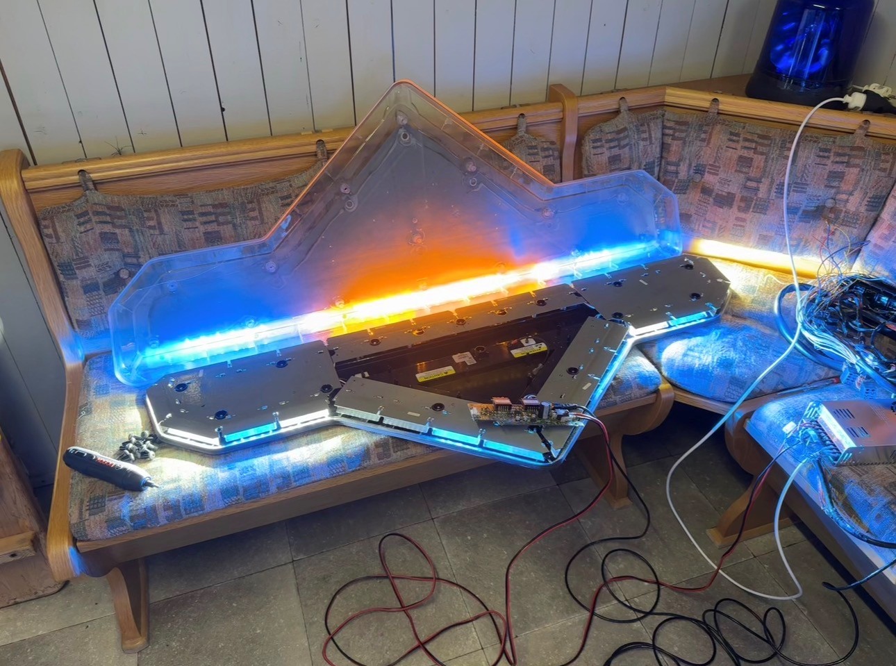 ![]() Ein Kleinanzeigenfund, bei dem ich erst hin und her überlegt habe, mich dann aber doch dafür entschieden habe, nachdem ich ein paar Videos bei YouTube gesehen habe. Ein Federal Signal Valor in der langen Variante. Diese Anlage stammt von einem NEF, (vermutlich vom DRK Main-Kinzig-Kreis), welches verkauft und zu einem Camper umgebaut wurde. Ausgestattet ist er mit blauen Hauptmodulen, ASW, Alleys und RWS (in gelb). Ein bisschen Zubehör wie Schalter, Kabel und das Serial Interface Modul (SIM) war mit dabei. Erstmal die Schrauben raus und Haube auf... Und da sieht man auch schon, woher der Balken kommt ![]() Wie gesagt, zubehör war auch dabei. Der Balken ist sehr ähnlich zum Federal Signal Vama Arjent, den ich in meiner Sammlung habe. Die Modulbauweise mit einzelnen, austauschbaren Platinen finde ich ganz gut! Ein erster Funktionstest lief dann auch gut. Leider gibt es 3 LED-Module, die ihren Dienst verweigern, da werde ich noch mal ran müssen. Man kann bei diesem Balken diverse Blitzmuster auswählen, das gefällt mir grundsätzlich ganz gut! Aber auch dieser Balken ist noch nicht fertig und reiht sich in die offenen Baustellen mit ein. |