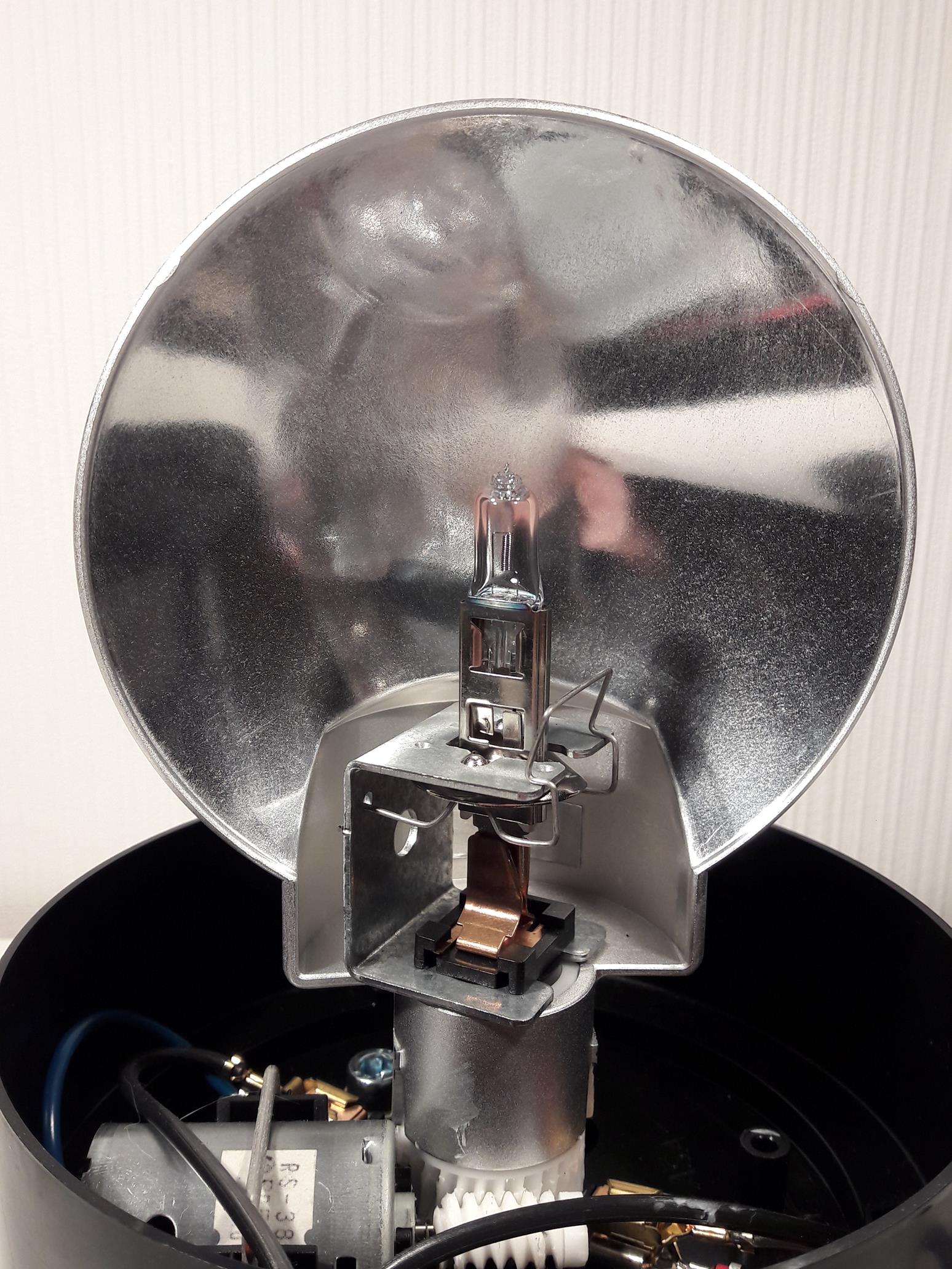 Um die H1-Birne dreht sich ein verspiegelter Flächenreflektor aus Kunststoff.