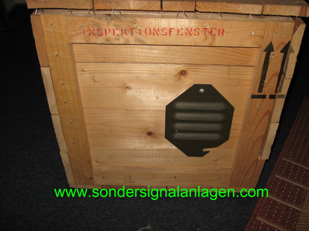 Die Leuchten sind in einer großen Holzkiste Luftdicht verpackt worden mit einem kleinem Sichtfenster zur Kontrolle.