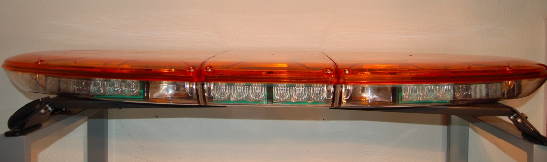 Der Balken basiert auf dem lower deck des Federal Signal Lichtbalkens Vista und hat im Gegensatz zum Vista in Drehspiegel oder Blitztechnick eine geringe Höhe von nur ca 8cm ohne Füße.