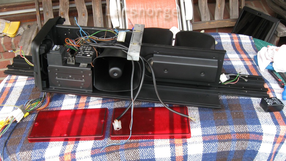![]() Das Fahrzeug hatte vorher nur eine RTK 3. Die RTK 4 SL stammte von unserem alten KdoW (ich bin einer anderen Feuerwehr). Die Schalter (Hella) sind für : Blaulicht, Horn, Frontblitzer, Heckblaulicht, und S/L Umschaltung. Die Kontrollleuchten (Mercedes-Benz alte SK Reihe) wanderten aus Platzmangel in den zweiten Radioschacht. Ebenso der Funkschalter. Wir haben die Anlage vor Montage weitestgehend zerlegt und gereinigt. In einer Nachtaktion haben wir dann die Anlage montiert und angeschlossen. Ebenso das Heckblaulicht. Die Frontblitzer wurden schon verdrahtet, waren jedoch noch nicht bestellt. Ergänzend wurden dann nóch die hochgesetzten Blinkleuchten montiert. |