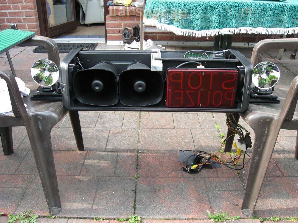 So, die Anlage ist fertig. Bilder kommen gleich. Die TEST Schaltung werde ich provisorisch anklemmen, ich bekomme noch die Funkaufschaltung nebst passendem Mikro dafür. Der Schlitz ist für einen Kartenleser, der die FMS Kodierung des POL Fahrzeugs festlegt. Das wird gemacht weil die Autos in den KPBs immer mal den Standort wechseln, aber dann immer den richtigen Funknamen und FMS Kennung haben. Also der Klette 12-26 fährt immer als dieser es kann aber ein Passat sein oder ein Vectra ... was halt gerade da ist. |